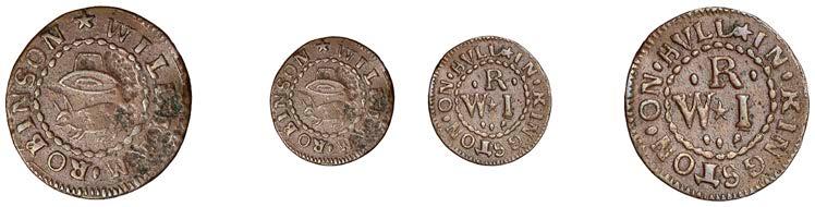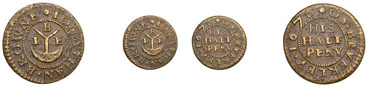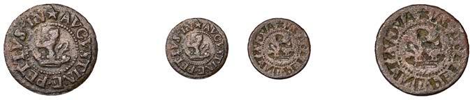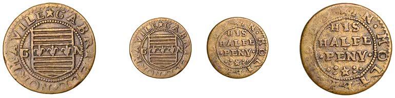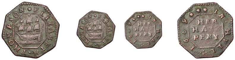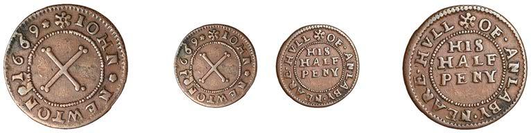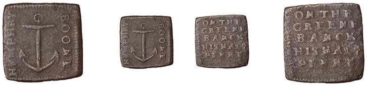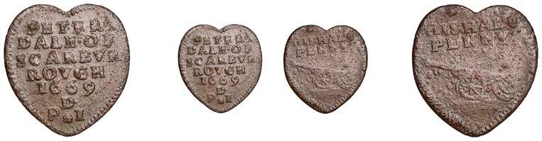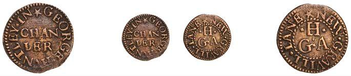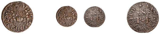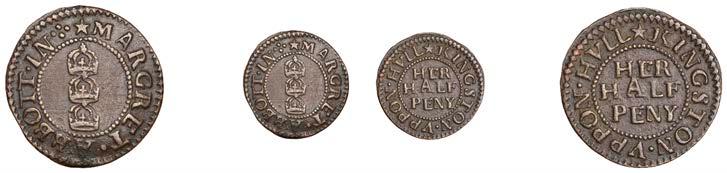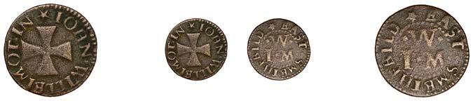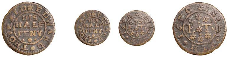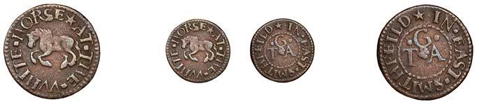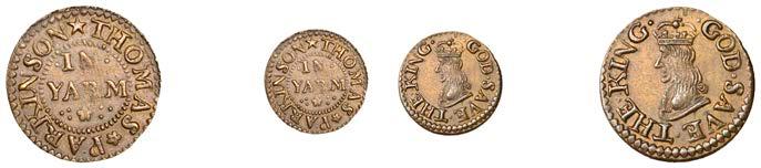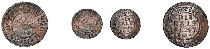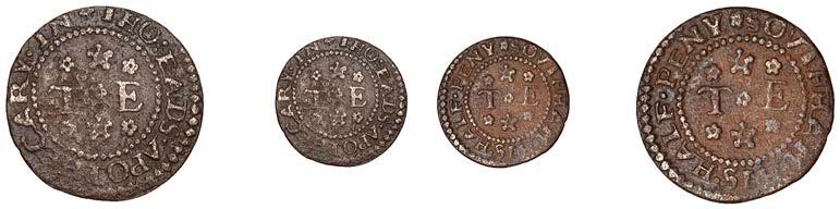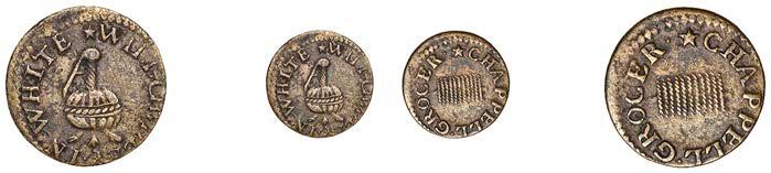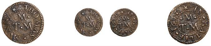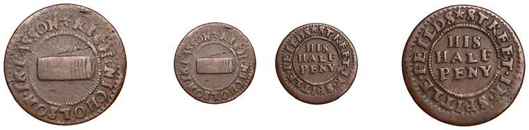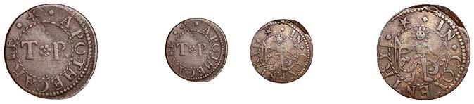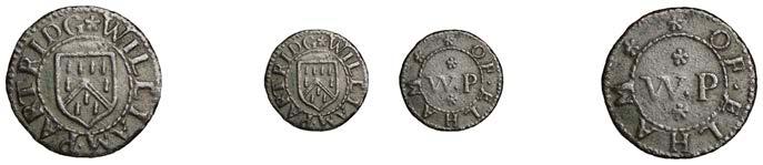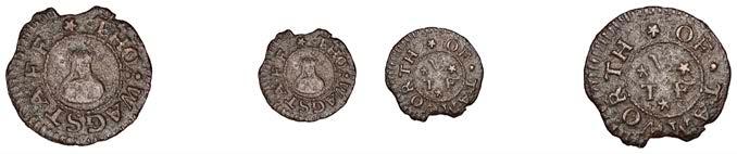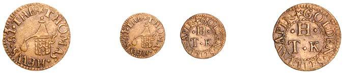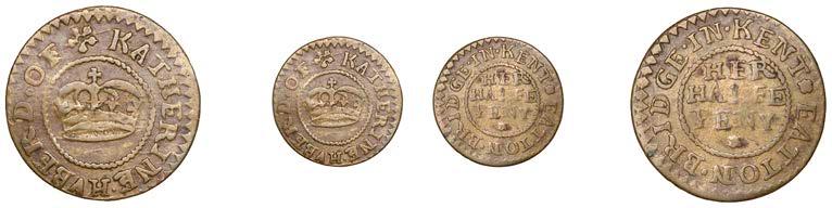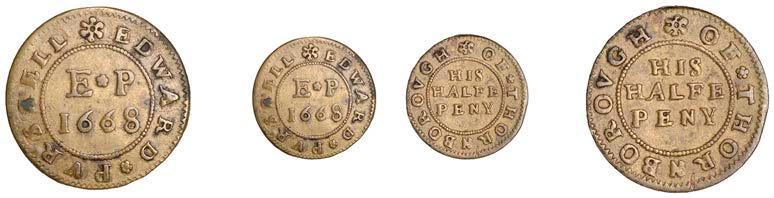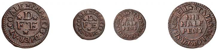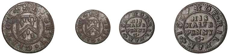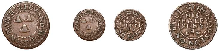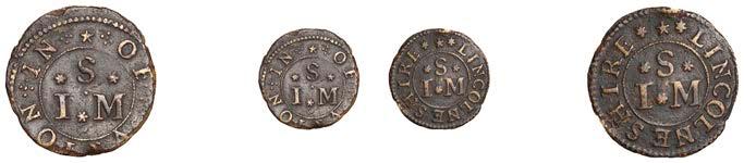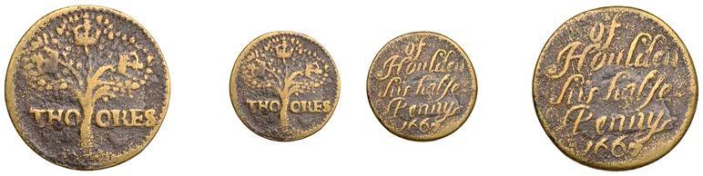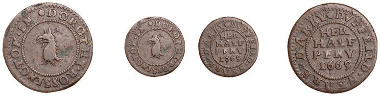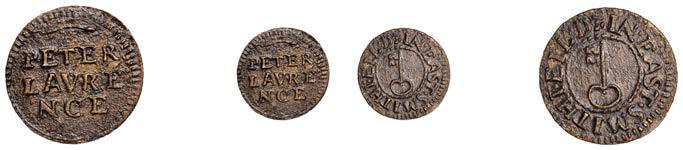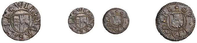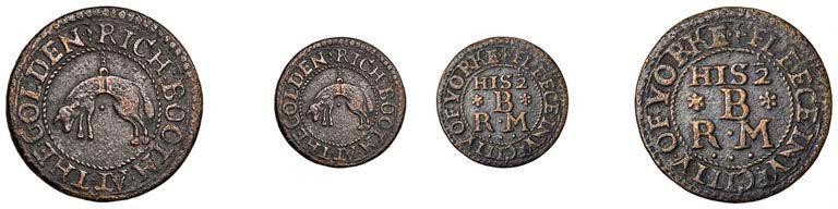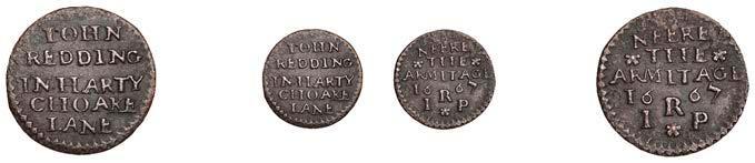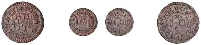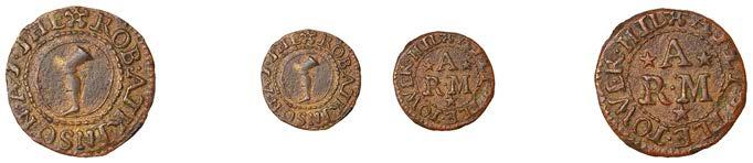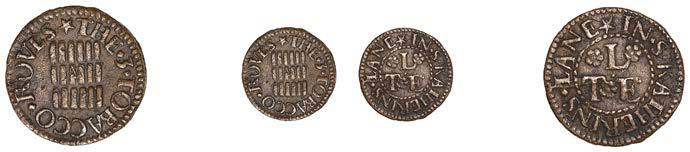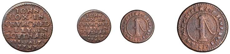 What remains of the legend of the rst token infers that the issuer was a baker, his surname begins with O and his wife’s name begins with R. All lots are illustrated on our website and are subject to extra charges which may be viewed in Ts and Cs 3, 4 and 10 at the back of this catalogue