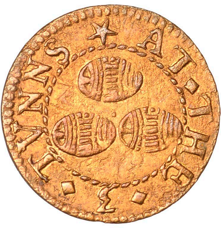 WhileelementsofthedesignofthistokenbringtomindtheseriesofforgeriesandfantasypieceswhichareperhapstobeassociatedwithJohn White (Norweb 9406ff), the overall workmanship is superior to most of them and the token is sold as viewed