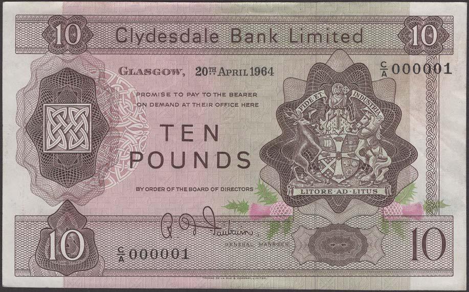 BRITISH & IRISH BANKNOTES 12 OCTOBER 2023 AT 10 AM FEATURED COLLECTION LOT 50–100 THE PETER HOLLAND TREASURY COLLECTION FEATURED ABOVE LOT 371 CLYDESDALE BANK LIMITED, £10 20 APRIL 1964 BACK COVER LOT 120 BANK OF ENGLAND HORACE G. BOWEN £5, LEEDS, 12 JULY 1900