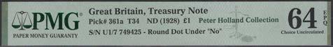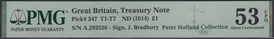 THURSDAY 12 OCTOBER AUCTION STARTING AT 10 AM ENGLAND PROVINCIAL BANKNOTES 1–49 THE PETER HOLLAND TREASURY COLLECTION BRADBURY 50–86 WARREN FISHER 87–100 TREASURY SERIES BRADBURY 101–112 WARREN FISHER 113–116 BANK OF ENGLAND ABRAHAM NEWLAND 117 MATTHEW MARSHALL 118–119 HORACE G. BOWEN 120 JOHN G. NAIRNE 121–122 ERNEST M. HARVEY 123–128 CYRIL P. MAHON 129–138 BASIL G. CATTERNS 139–148 KENNETH O. PEPPIATT 149–168 PERCIVAL S. BEALE 169–172 LESLIE K. O’BRIEN 173–176 JASPER Q. HOLLOM 177–181 JOHN S. FFORDE 182–189 JOHN B. PAGE 190–196 DAVID H. F. SOMERSET 197–209 GEORGE M. GILL 210 GRAHAM E. A. KENTFIELD 211–217 BRITISH MILITARY 218–219 IRELAND PRIVATE BANKS AND NON–BANK ISSUES 220–225 MAJOR JOINT STOCK BANKS BANK OF IRELAND 226–239 BELFAST BANKING COMPANY 240–248 THE NATIONAL BANK 249–260 NORTHERN BANK 261–274 PROVINCIAL BANK OF IRELAND 275–293 ALLIED IRISH BANKS 294 FIRST TRUST BANK 295–299 ULSTER BANK LTD 300–314 REPUBLIC ISSUES CONSOLIDATED PLOUGHMAN SERIES 315–330 CURRENCY COMMISSION 331–338 CENTRAL BANK OF IRELAND 339–351 SCOTLAND BANK OF SCOTLAND GROUP BANK OF SCOTLAND 352–361 BRITISH LINEN BANK 362–365 UNION BANK OF SCOTLAND 366–367 CENTRAL BANK OF SCOTLAND 368 GLASGOW & SHIP BANK COMPANY 369 THISTLE BANK LIMITED 370 CLYDESDALE BANK GROUP CLYDESDALE BANK 371–372 CLYDESDALE & NORTH OF SCOTLAND BANK 373 NORTH OF SCOTLAND BANK 374–381 EASTERN BANK OF SCOTLAND 382 EDINBURGH & GLASGOW BANK 383 ROYAL BANK OF SCOTLAND GROUP ROYAL BANK OF SCOTLAND 384–385 COMMERCIAL BANK OF SCOTLAND 386–392 NATIONAL BANK OF SCOTLAND 393–407 INDEPENDENT AND PRIVATE BANKS DUNDEE COMMERCIAL BANK 408 GALLOWAY BANKING COMPANY 409 MONTROSE BANKING COMPANY 410–411 PAISLEY COMMERCIAL BANKING COMPANY. 412 STERLING COMMERCIAL BANKING COMPANY 413 ISLE OF MAN PRIVATE BANKS 414–430 INTERNMENT CAMPS 431–433 GOVERNMENT ISSUES 434–436 JERSEY PRIVATE BANKS 437–444 STATES ISSUES 445–465 GUERNSEY STATES ISSUES 466–469