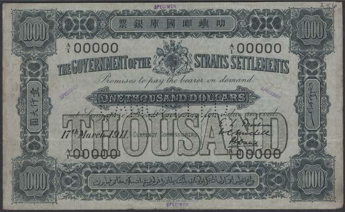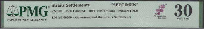 FORTHCOMING AUCTION THE FRANK GOON REFERENCE COLLECTION OF BRITISH MALAYA: PART TWO • TO BE SOLD BY NOONANS LIVE IN SINGAPORE SATURDAY 23 MARCH 2024 ALL ENQUIRIES PLEASE CONTACT ANDREW PATTISON OR THOMASINA SMITH ON 020 7016 1700 OR EMAIL BANKNOTES@NOONANS.CO.UK A REMARKABLE GOVERNMENT OF THE STRAITS SETTLEMENTS, SPECIMEN $1000 17 MARCH 1911, SERIAL NUMBER A/1 000000 NOONANS MAYFAIR • 16 BOLTON STREET MAYFAIR LONDON W1J 8BQ • WWW.NOONANS.CO.UK