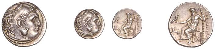KINGS OF MACEDON, Alexander the Great, Drachm, posthumous issue struck under Lysimachos, Magnesia on the Maeander, c 300, head of Herakles right wearing lion-skin, rev. Zeus seated left, holding eagle and sceptre, lion leaping left in +eld, A in wreath below throne, 4.33g (Price 1985). Struck from dies of accomplished style, extremely !ne and attractively toned £200-£260