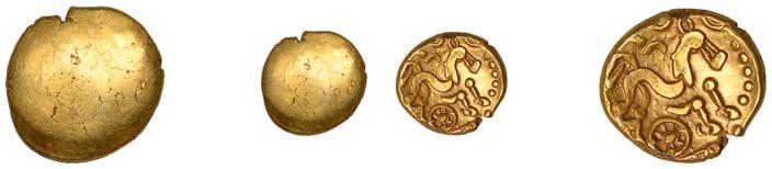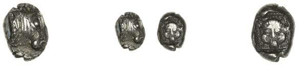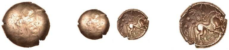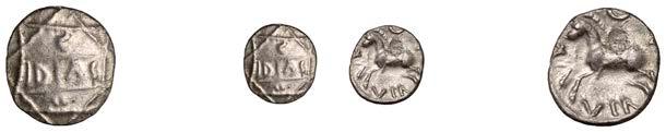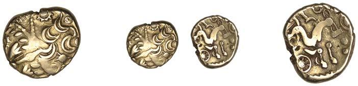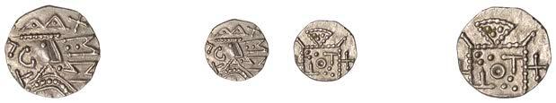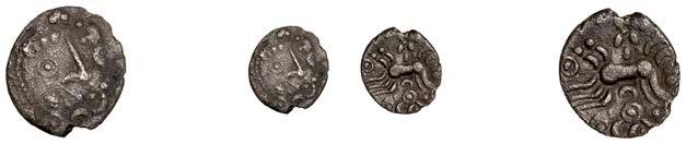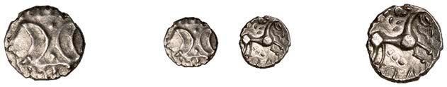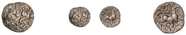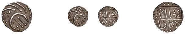 DOBUNNI,silverUnits(3),headtypeI/J, rev. triple-tailedhorseright,crossbelow,0.89g(ABC2036;S378);headtypeB;head type C; together with Quarter-Stater, wheel type (fragment) [4]. All very !ne, last three damaged £80-£100