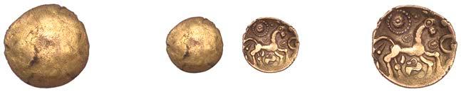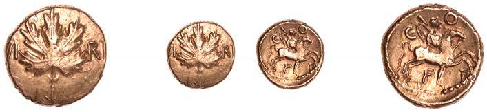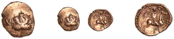 DOBUNNI, Corio, Quarter-Stater, plain, rev. triple-tailed horse right, pelletal sun ring above, small animal below, 1.23g (ABC 2051; BMC 4134; VA 1039-1; S 387). Very "ne, no evidence of COR on obverse £400-£500
