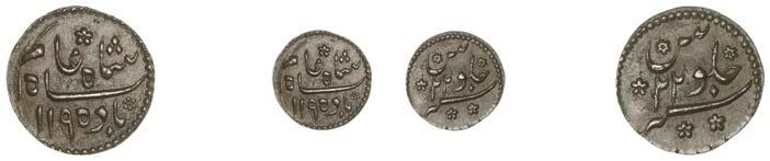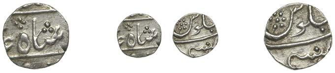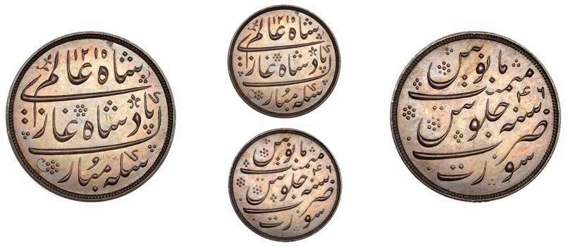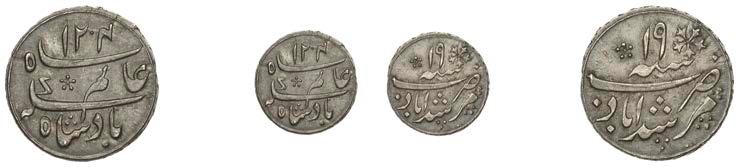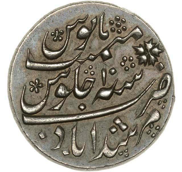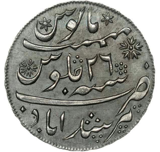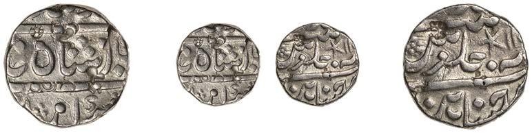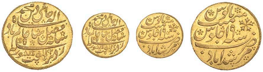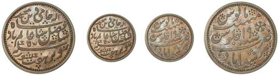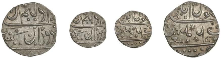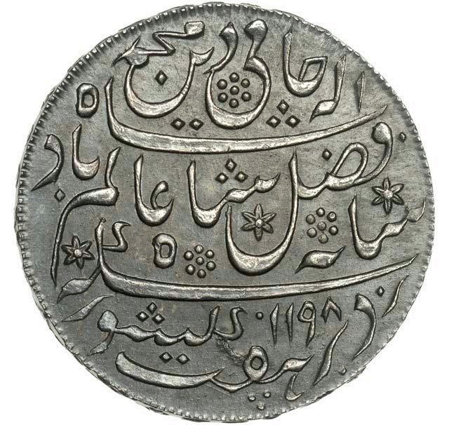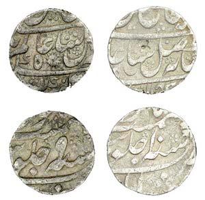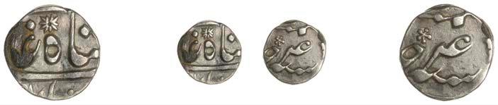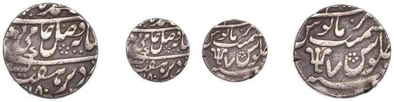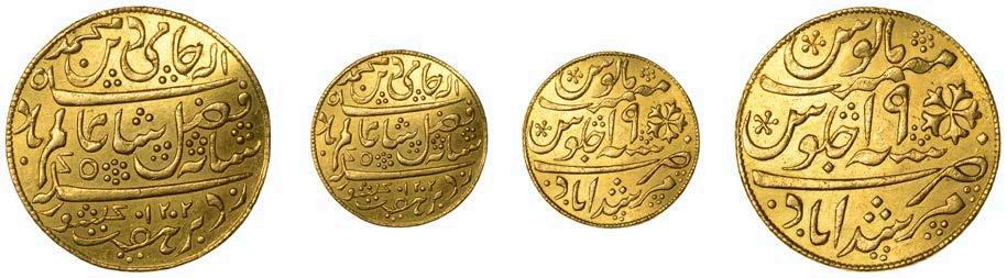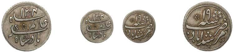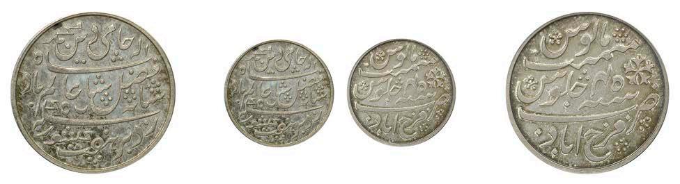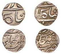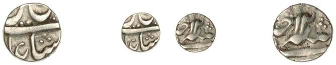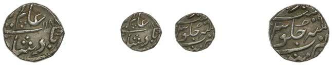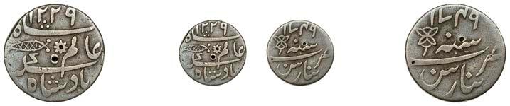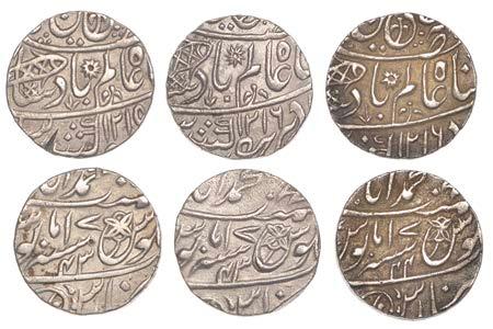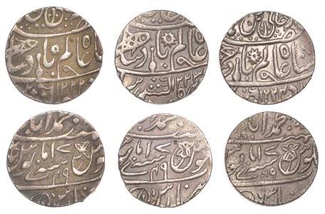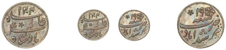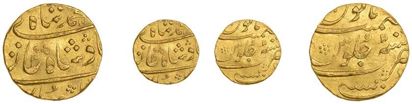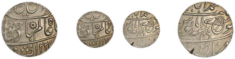 •The Farrukh Siyar and Muhammad Shah quarter-rupees struck from specially prepared dies (Lots 72-73) are special coins containing the complete legends.