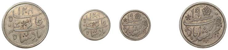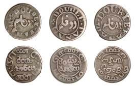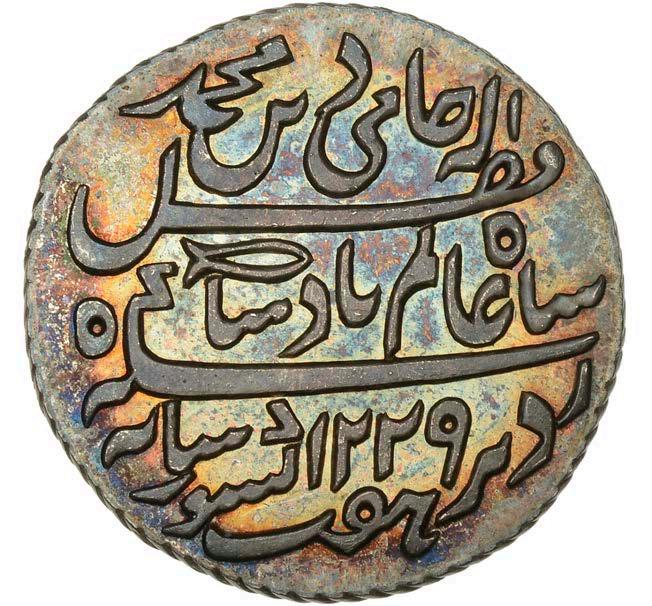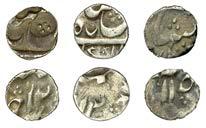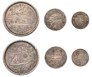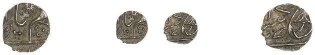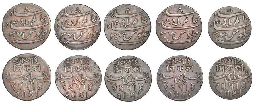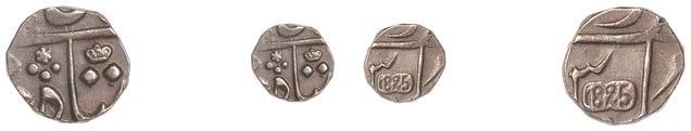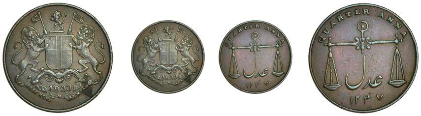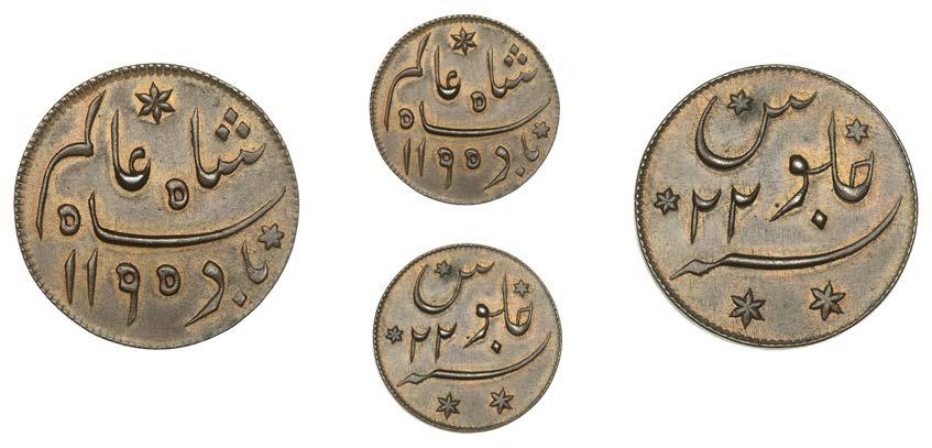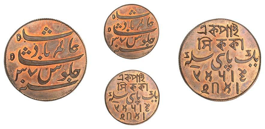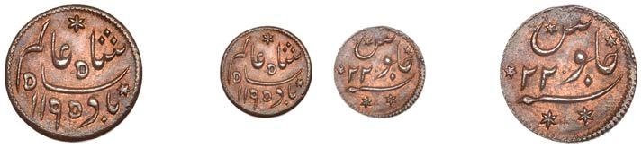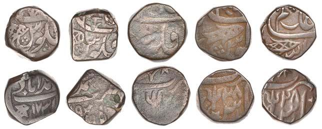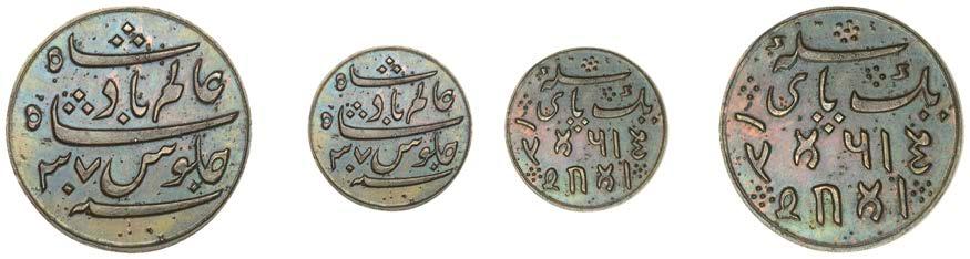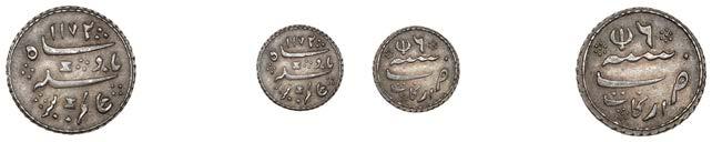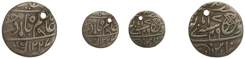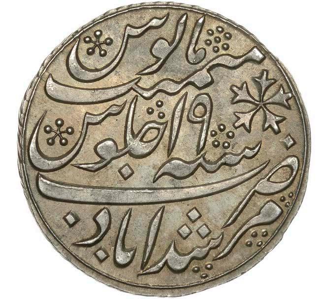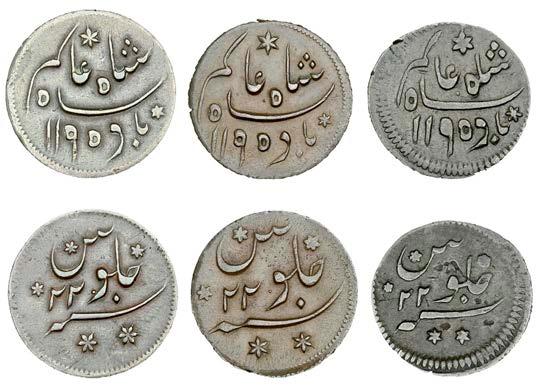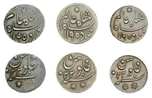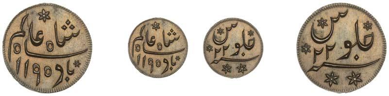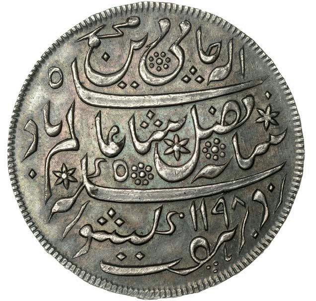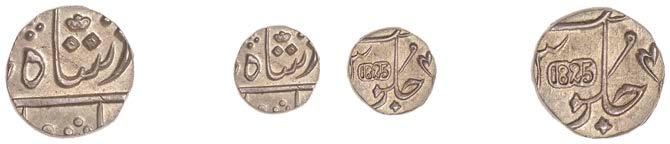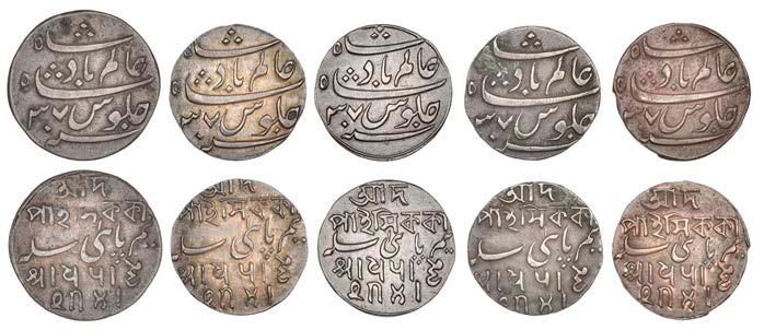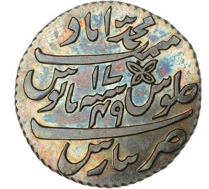 •The Farrukh Siyar and Muhammad Shah quarter-rupees struck from specially prepared dies (Lots 72-73) are special coins containing the complete legends.
