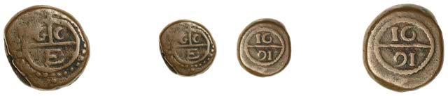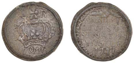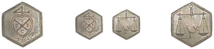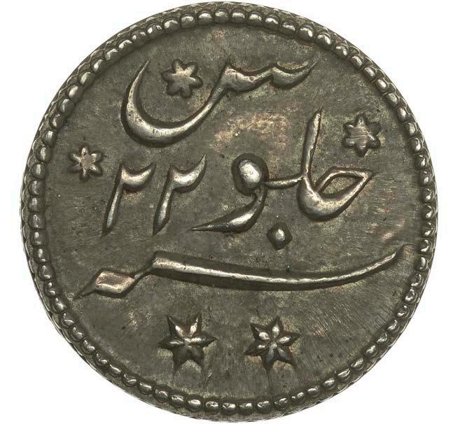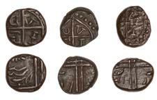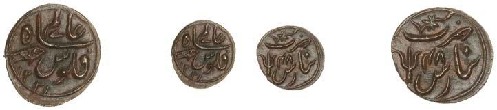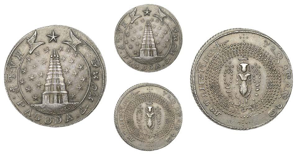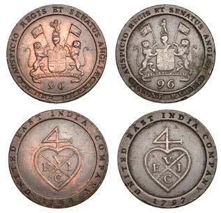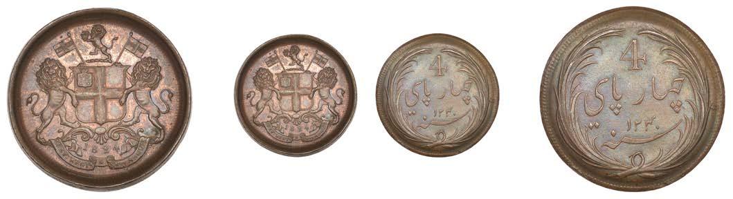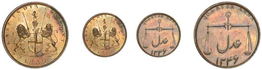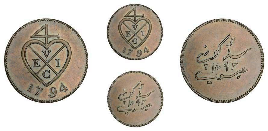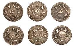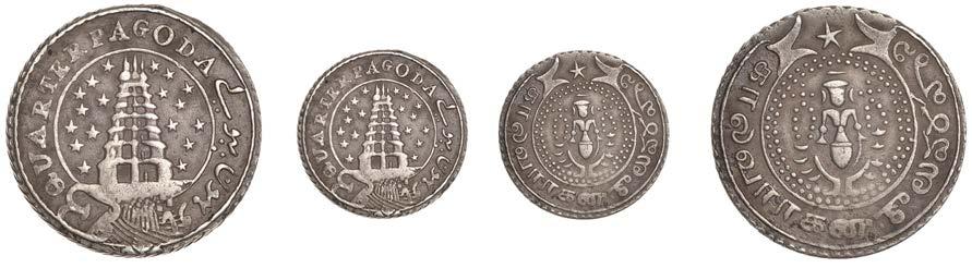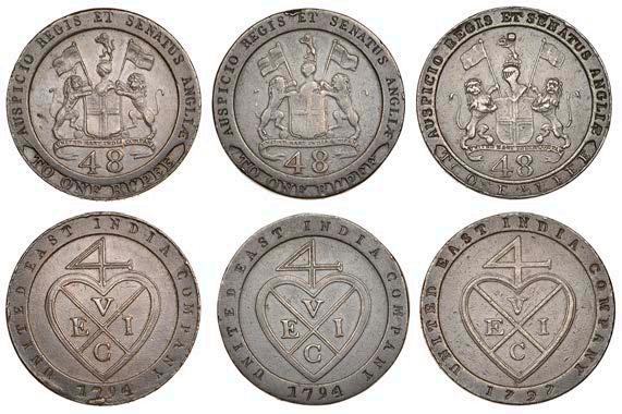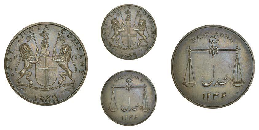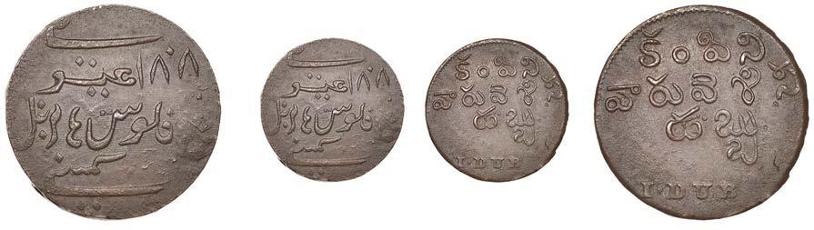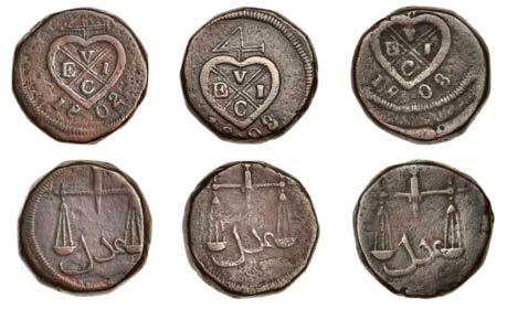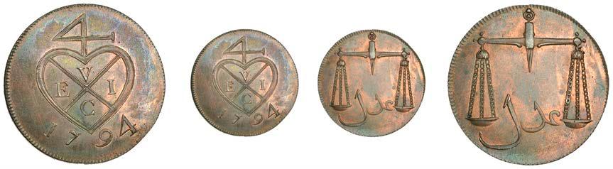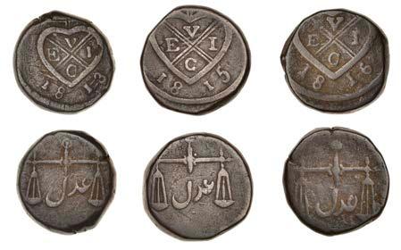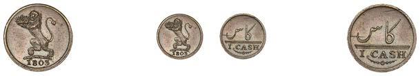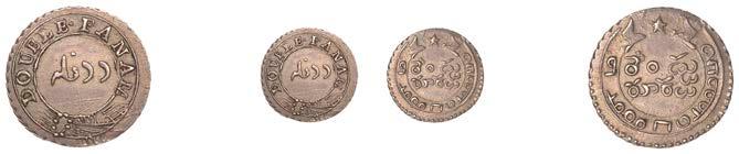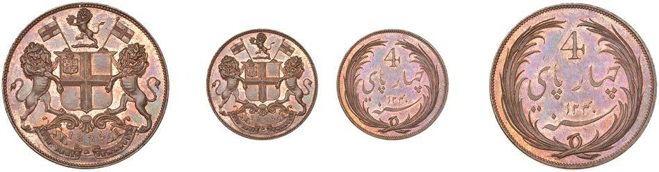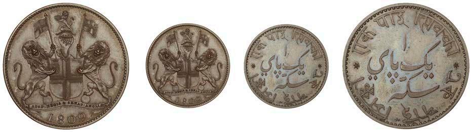 •The Pridmore/Wheeler mint specimen 1807-8 set of minor denominations, ve fanams, double-fanam and fanam (Lot 101) and the ve-piece mint specimen 1808-12 issue from half-pagoda to fanam (Lot 108). These exceptionally rare sets have only come onto the market every 20 years or so, thus a collector must be nimble.