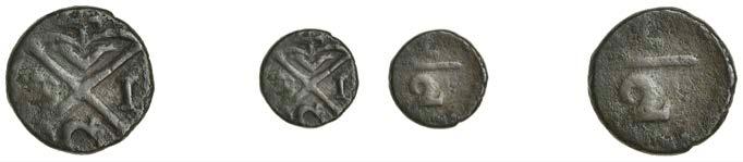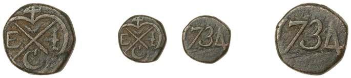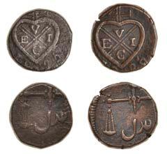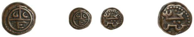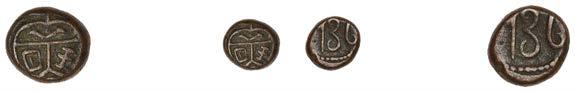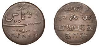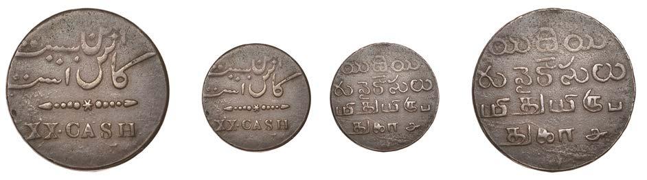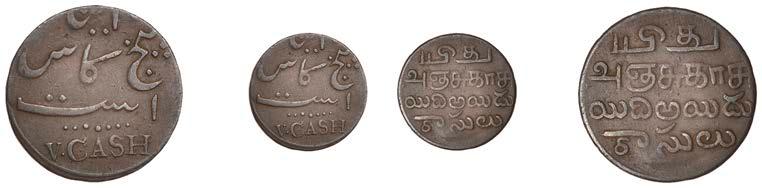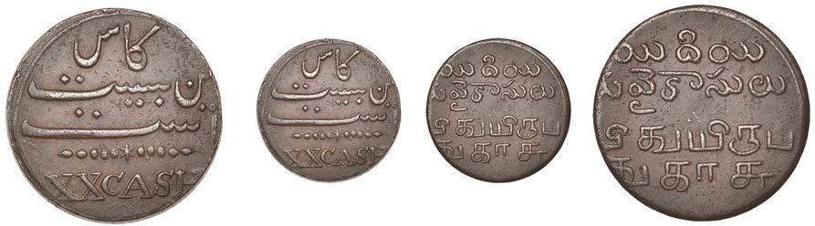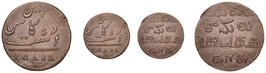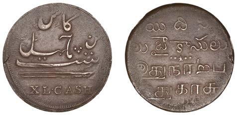 • The Madras mint XL (40) cash to 2½ cash with the two Tamil letter forms (Lots 192-215) are usually in poor condition, but through perseverance I believe I have managed to assemble a prized group of this series, especially the XL cash.