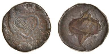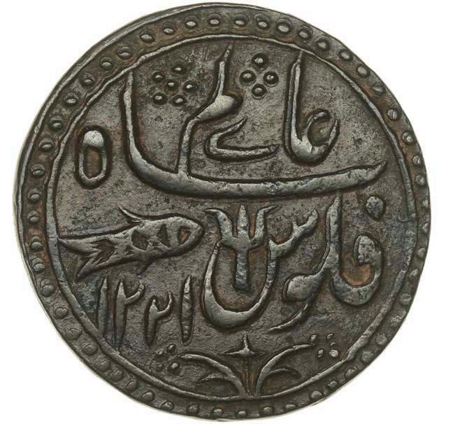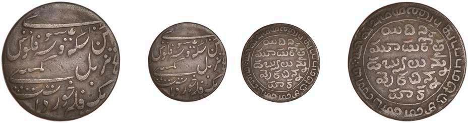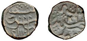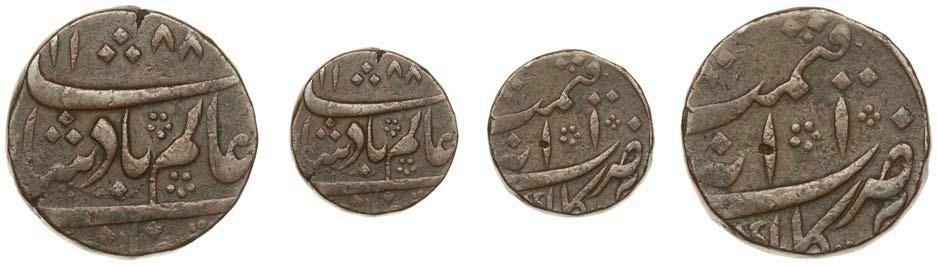 •The Aurangzeb Alamgir I Chinapatan copper falus or paisa (Lot 74) is a fascinating rare coin.