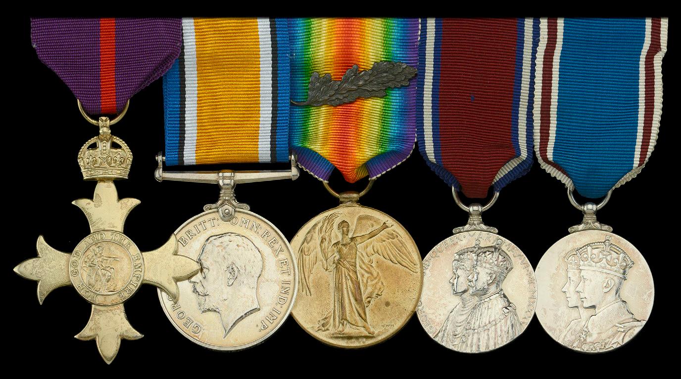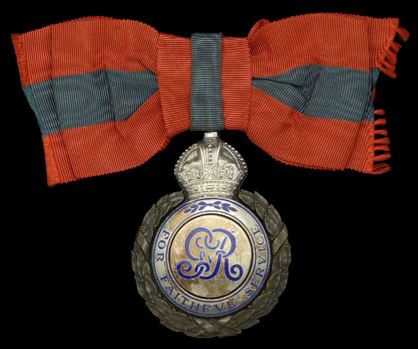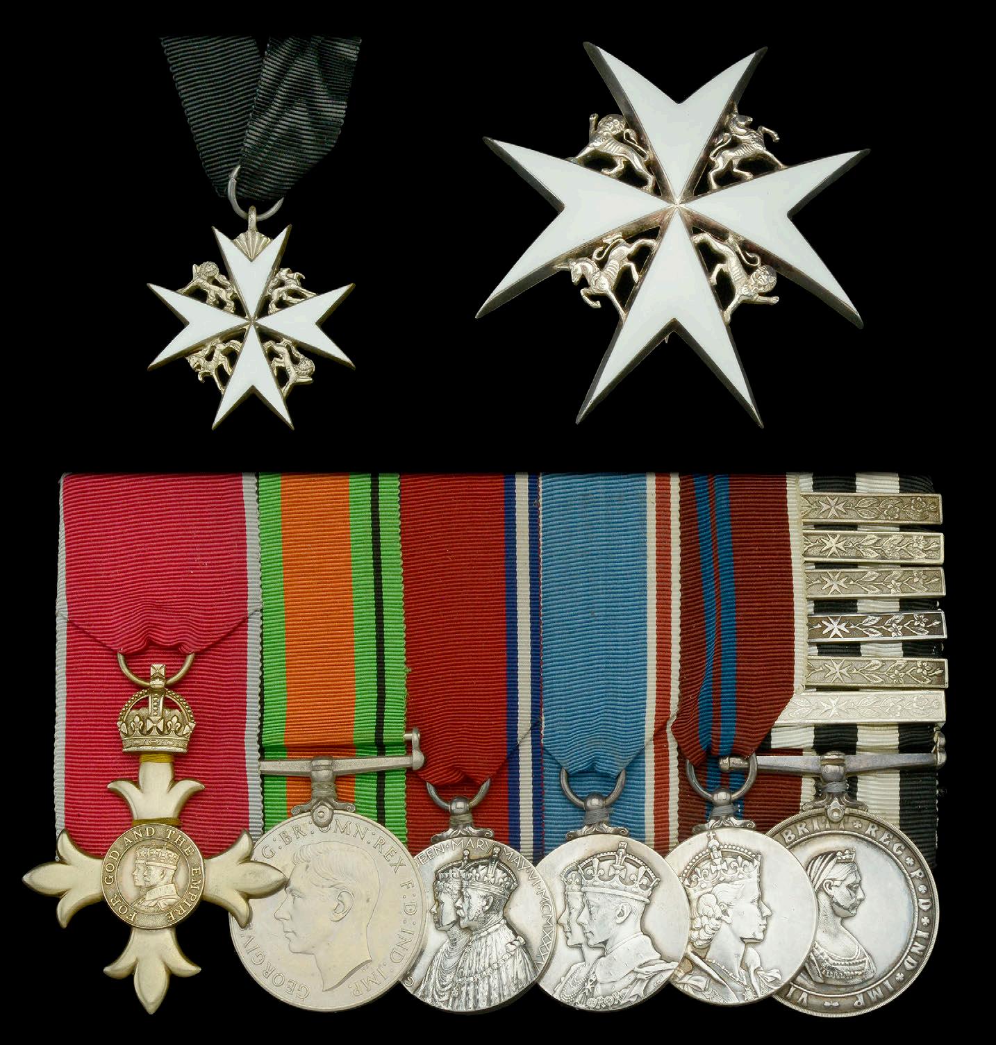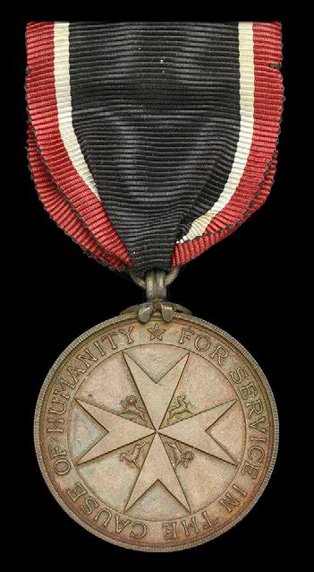 The Order of St. John of Jerusalem (3), Commander’s (Brother’s) neck badge, silvered and enamel, with heraldic beasts in angles, on Associate’s neck riband; Serving Brother’s breast badge (2), 2nd type (1932-39), silver and enamel, circular badge with white enamel cross with heraldic beasts in angles raised above the background; 3rd (Wartime) issue (1939-47), skeletal silver badge; together with a Salvation Army Long and Faithful Service Medal, silver and enamel, the reverse engraved ‘M Mrrs s M Maaj joor r JJ FFe errr reei irra a 118 8998 8 ’; and a Royal Medico-Psychological Association Cross for Profciency in Mental Nursing, bronze, the reverse engraved ‘D D M M JJ O Olli ivvi ieer r ’, minor edge bruising, very fne and better (5) £100-£140