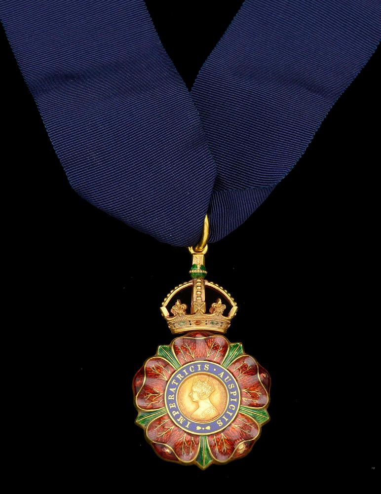 The Most Eminent Order of the Indian Empire, C.I.E., Companion’s 3rd type neck badge, gold and enamels, with full and miniature width neck ribands, in Garrard, London, case of issue, minor enamel chips to red enamel, otherwise about extremely fne £1,400-£1,800