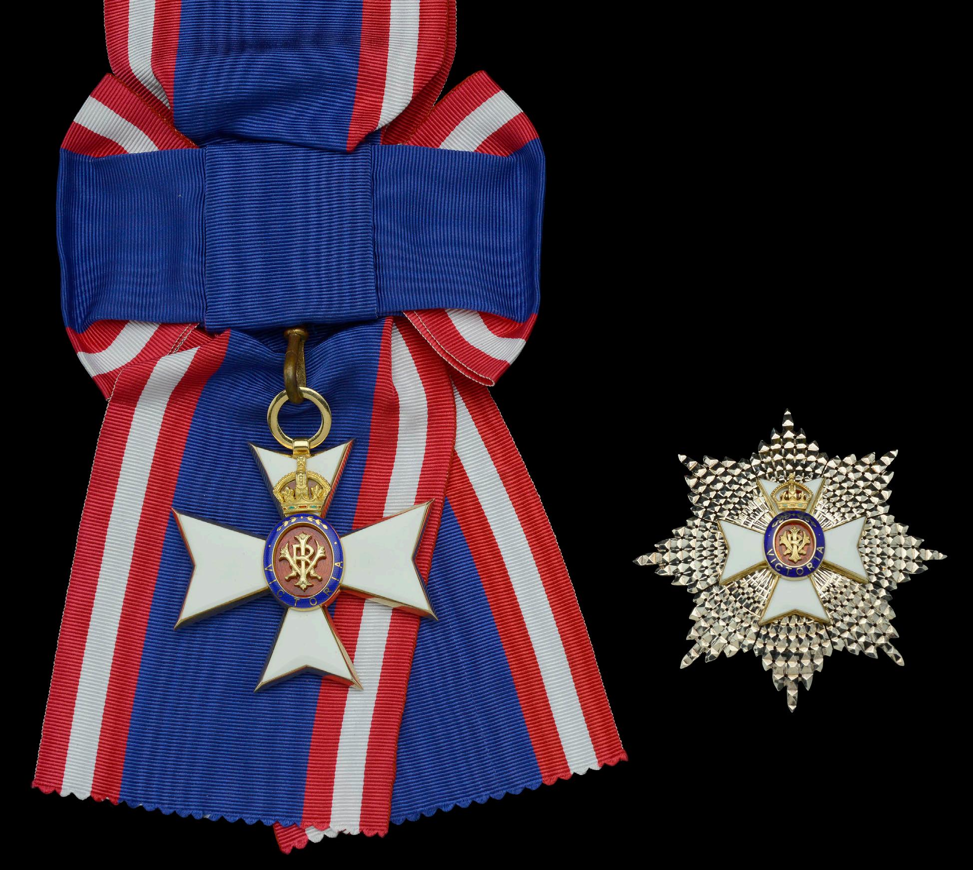 The Royal Victorian Order, G.C.V.O., Knight Grand Cross set of insignia, comprising sash badge, silver-gilt and enamel, reverse officially numbered ‘1145’; and breast star, silver, silver-gilt, and enamel, reverse officially numbered ‘1145’, with gold retaining pin, with full sash riband, extremely fne (2) £1,400-£1,800