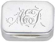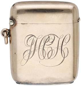 A VICTORIA SILVER SANDWICH BOX, of plain rectangular form, with drop front, by Henry Gri th, Birmingham 1897, dimensions 8.5 x 12.5cm. £260–£360