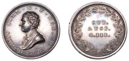 DeathoftheDukeofMarlborough,1722[struck c.1740],acoppermedalbyJ.Dassier,42mm,39.70g(Eisler217;MIII, 457/68;E495); GeorgeIII, RecoveryfromIllness,1789,acoppermedalbyJ.Davies,29mm,7.46g(BHM296;DH Middlesex 932); BattleoftheNile,1798,awhitemetalmedal,unsigned[byT.WyonSr],38mm,22.60g(Hardy10;BHM452;E893); SamuelParr,1821,acoppermedalbyB.R.Faulkner[afterG.Clarke],41mm,41.23g(BHM1160);togetherwithabrass‘To Hanover’ counter, 1837 [5]. Fourth about extremely ne, others in varied state
