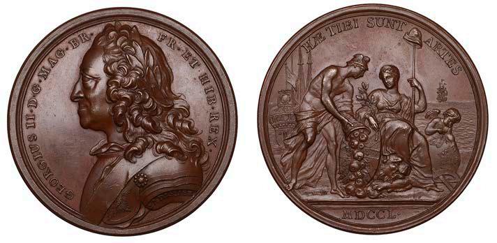 SecondTreatyofVienna,1731,acoppermedalbyJ.Croker,laureatebustofGeorgeIIleft, rev. Neptuneinseachariot, commanding tranquility from the winds, 47mm, 43.78g (MI II, 496/39; Pax 503; E 523). Obverse very ne, reverse extremely ne
