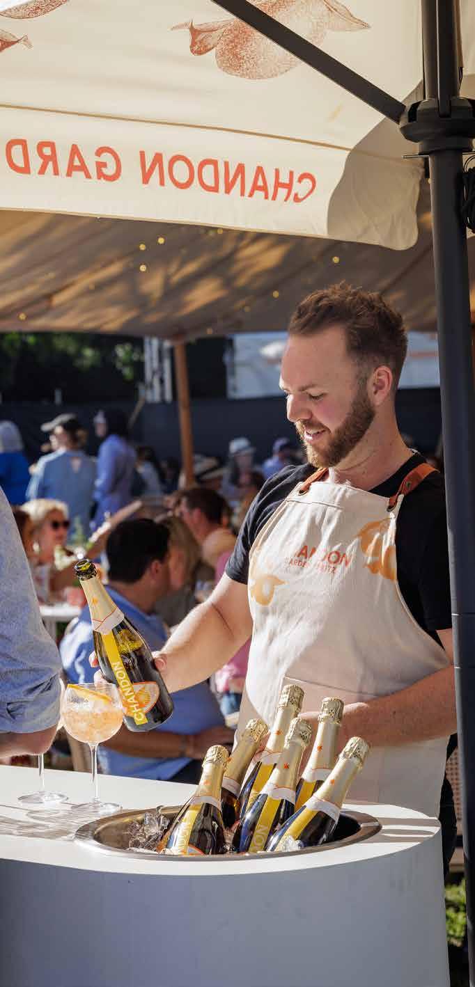 For a more intimate Festival Village experience, the Chandon Lounge offers two exclusive, ticketed sessions daily, each with unique offerings. Guests can enjoy catering takeovers by top local restaurants and collaborations with the region's finest artisan producers. With only 200 tickets available per session (18+ only), these will sell out fast! Your ticket includes a private marquee and lawn area, express entry, access to Festival Village, complimentary catering, and three drinks: a Chandon Garden Spritz on arrival, a Matso's Ginger Beer, and a choice of local beers (all other beverages are at your own expense).