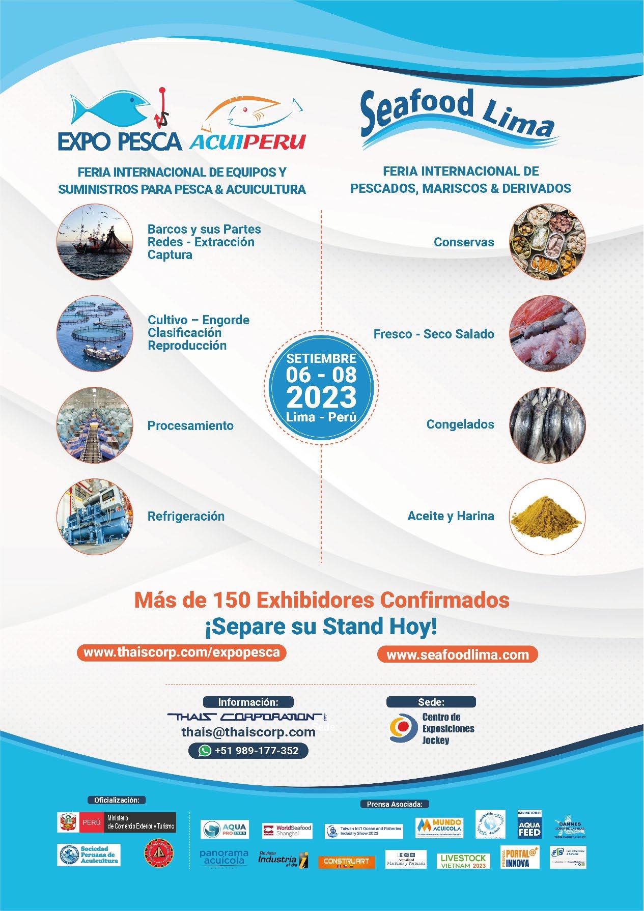 La Feria Internacional de Pesca & Acuicultura EXPO PESCA se llevó a cabo del 3 al 5 de setiembre en el Centro de Exposiciones Jockey en Lima. Este evento se realiza cada dos años con el objetivo de ofrecer equipos, suministros y Servicios para Pesca & Acuicultura. En paralelo se realizó la feria Seafood Lima, la feria Internacional de pescados y mariscos.
