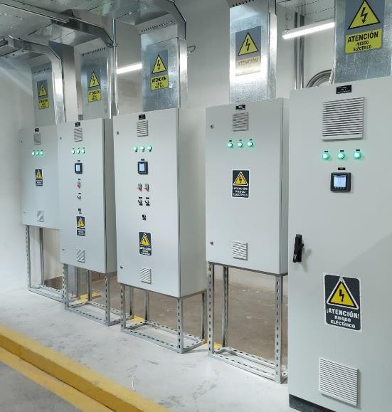 Tableros eléctricos para bombas primaria y secundarias, sistema de ven lación forzada, presurización de escaleras, extracción de monóxido, chiller, etc.