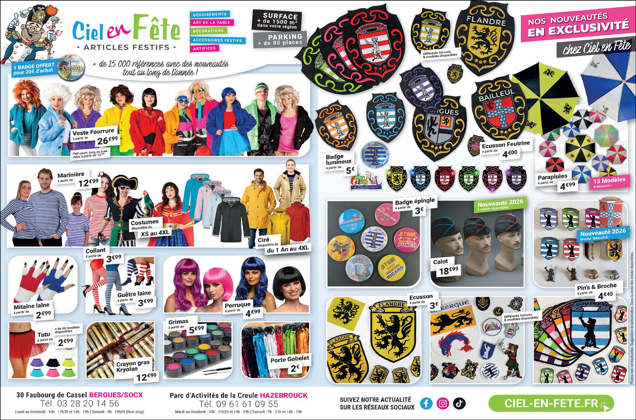 La playlist qui se répand dans les hautparleurs du magasin ne laisse aucun doute : chez Ciel en fête à Hazebrouck, la saison du carnaval est bien engagée. Et la valse des palettes de costumes et d’accessoires laissent peu de temps pour souffler à Nicolas, le gérant de la boutique, et à toute son équipe.