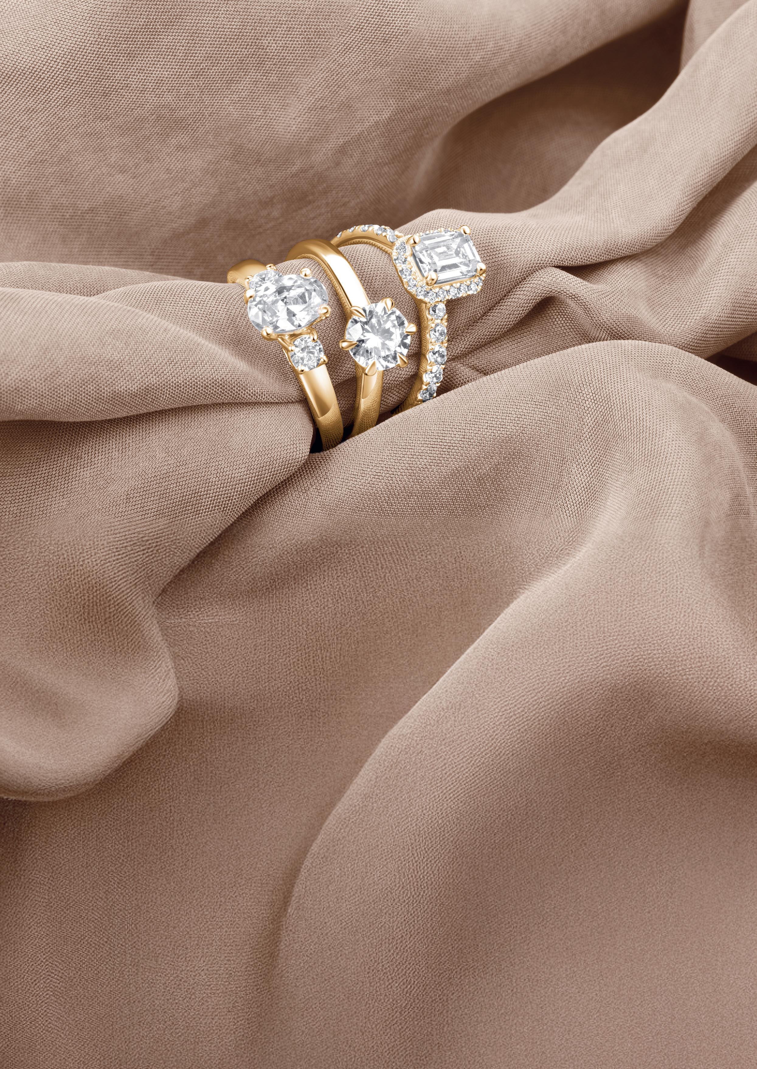 Siersbøl Luxury giver dig 4 ringskinner og 12 elegante 1ct labgrown diamanter – hver især med sin egen smukke form, slibning og fatning.