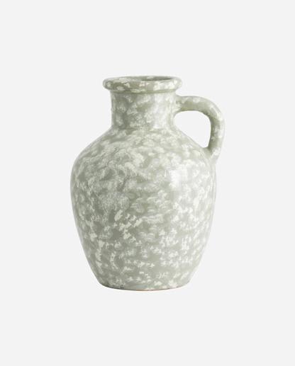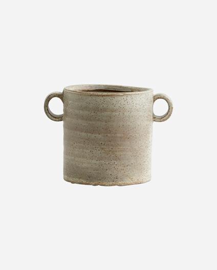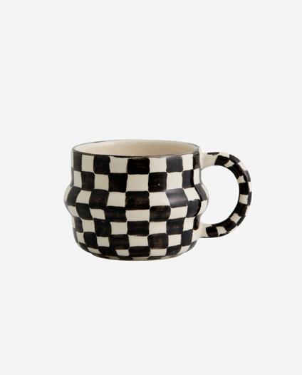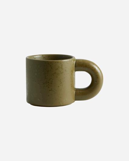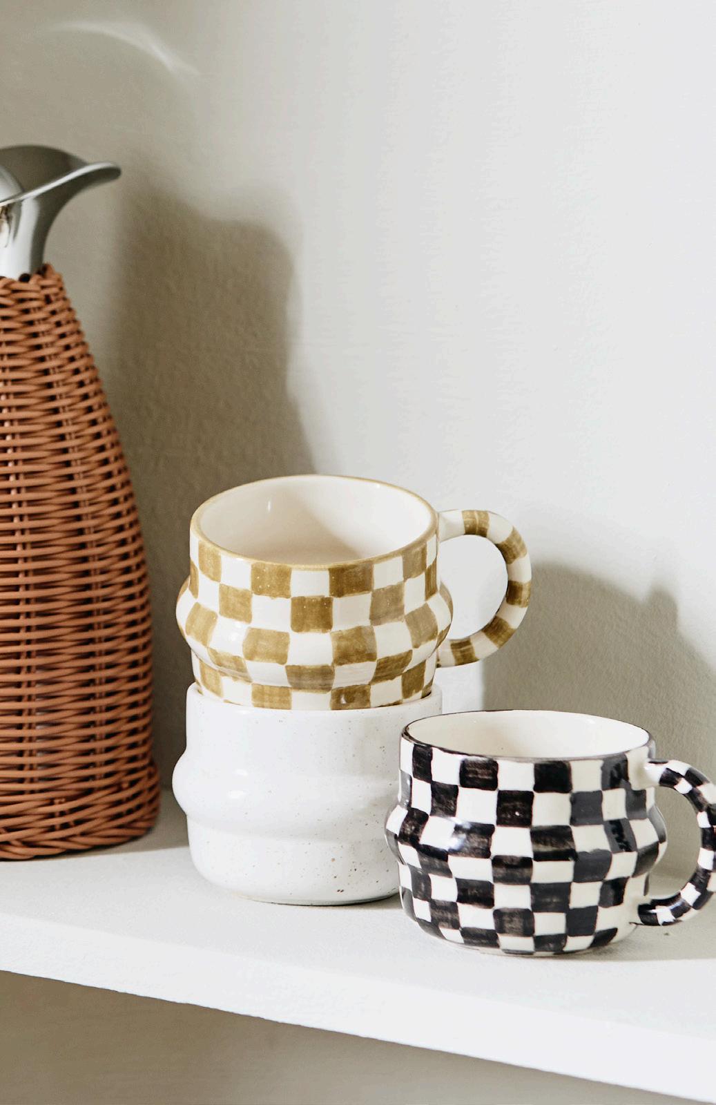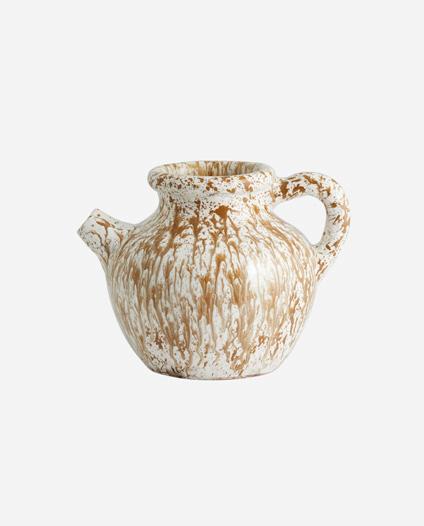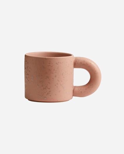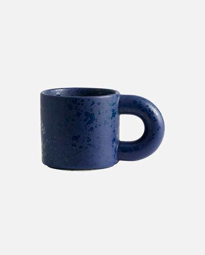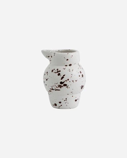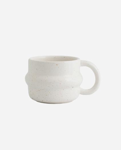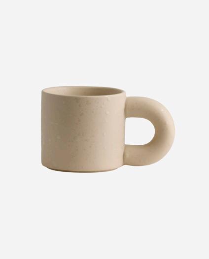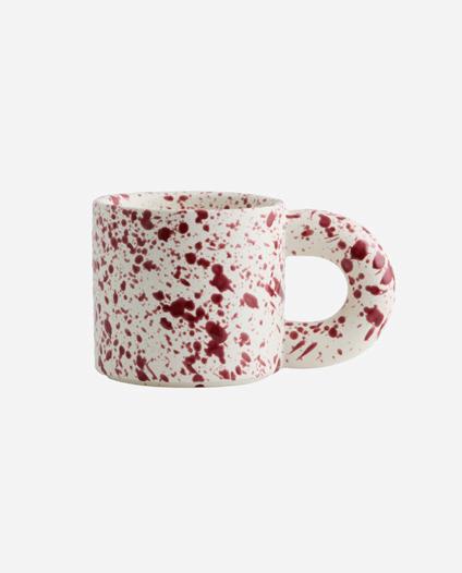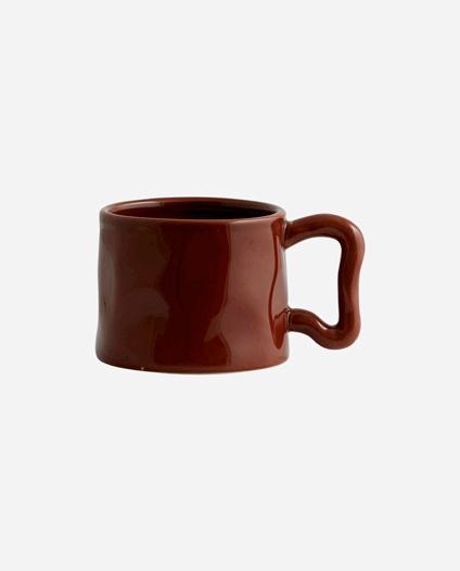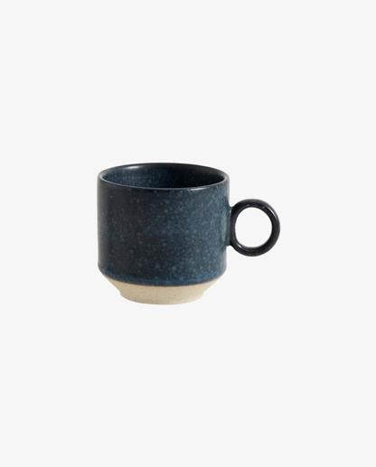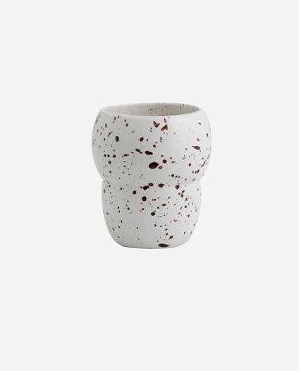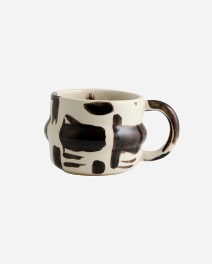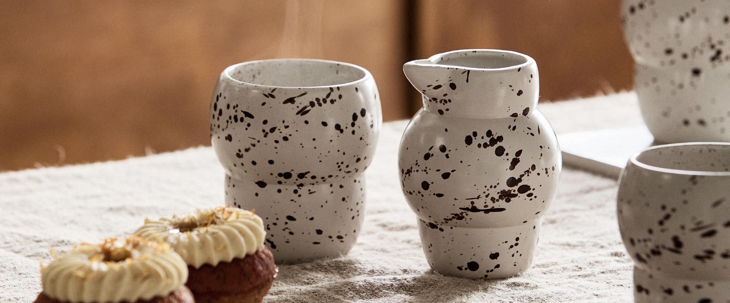RIA is a handcrafted stoneware series with a unique, artistic touch. The dark brown splash pattern adds elegance and character, while the organic design ensures a comfortable grip.