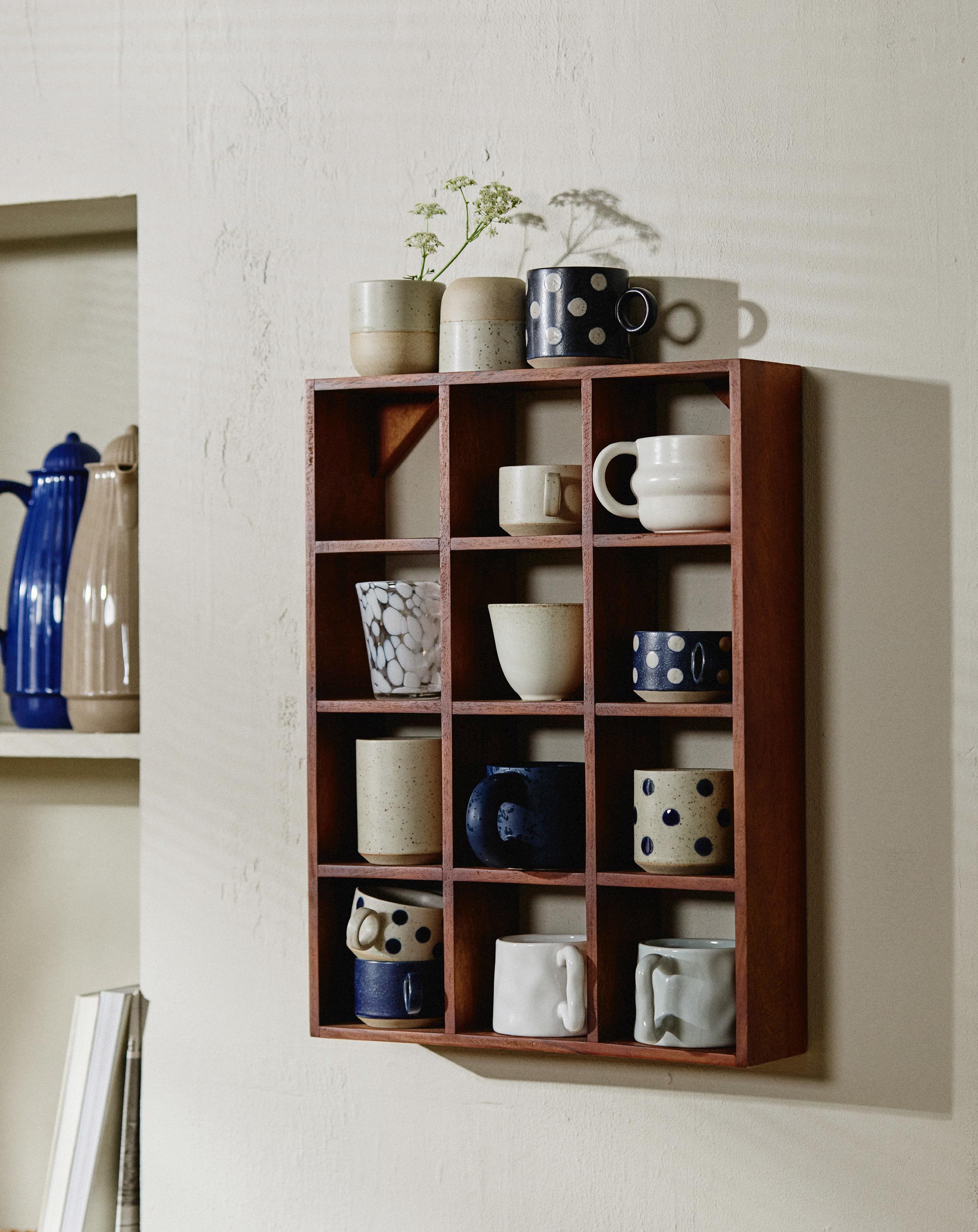 The series includes cups, plates, trays and bowls in various colours that can be mixed and matched. Natural glaze variations make each piece unique.