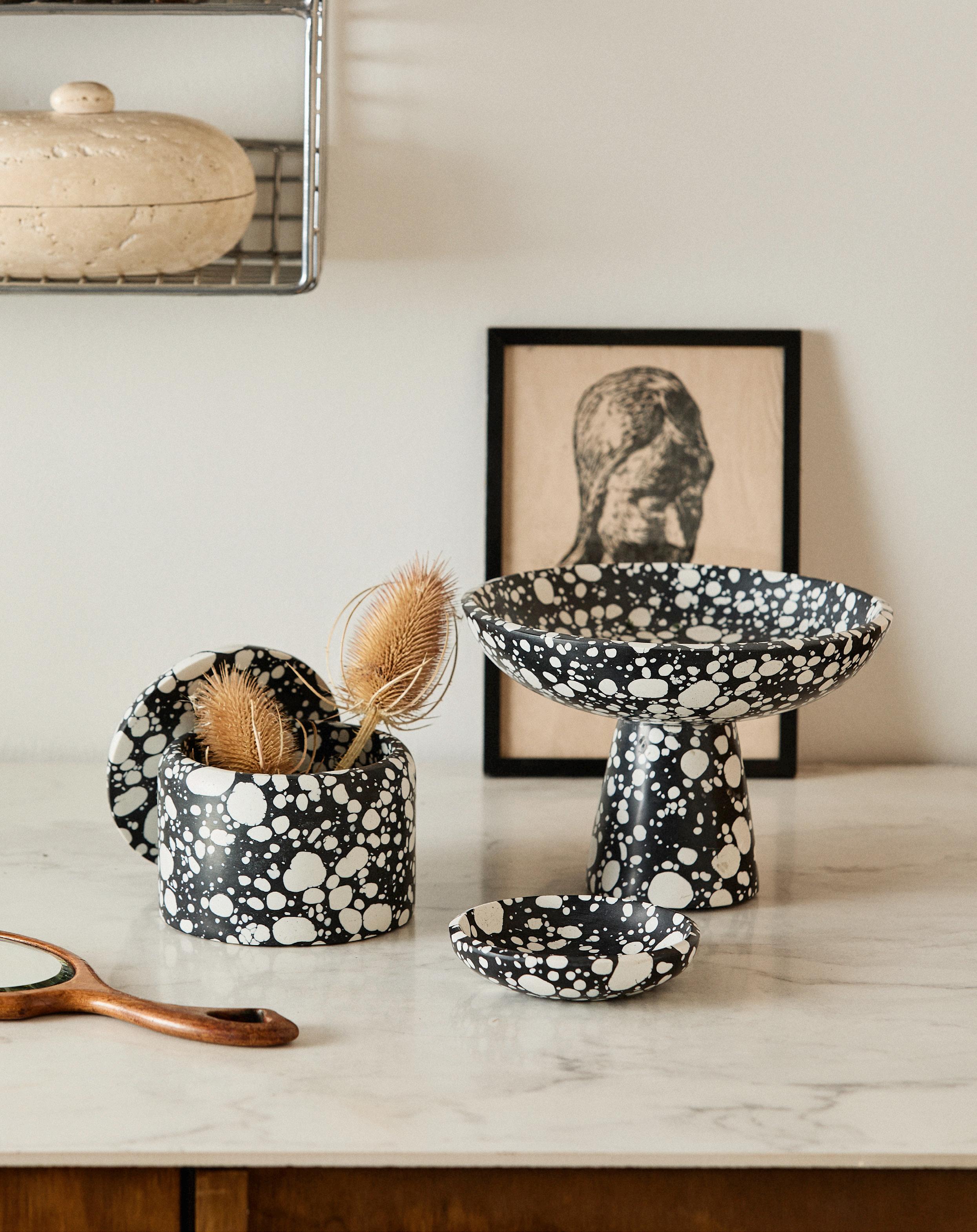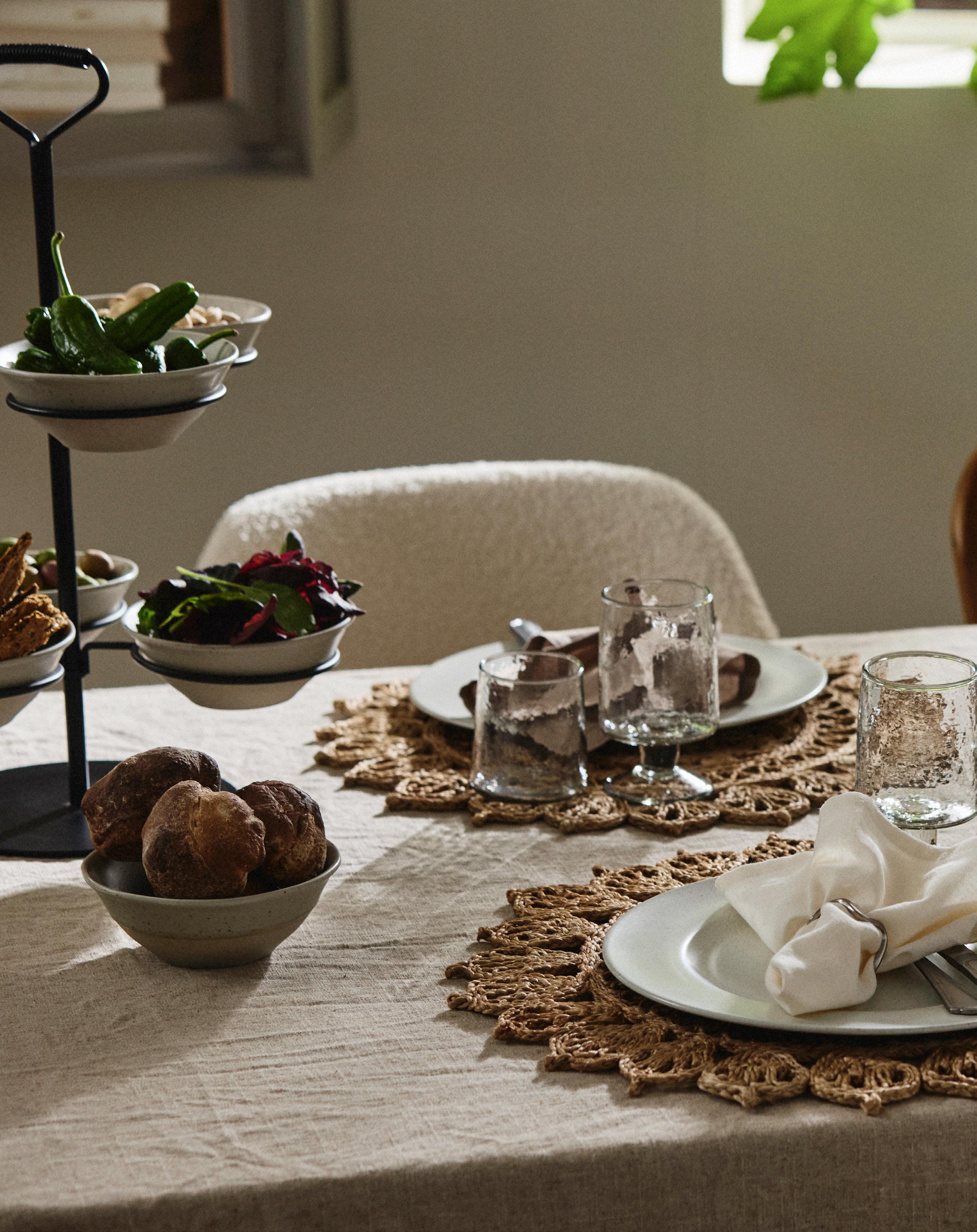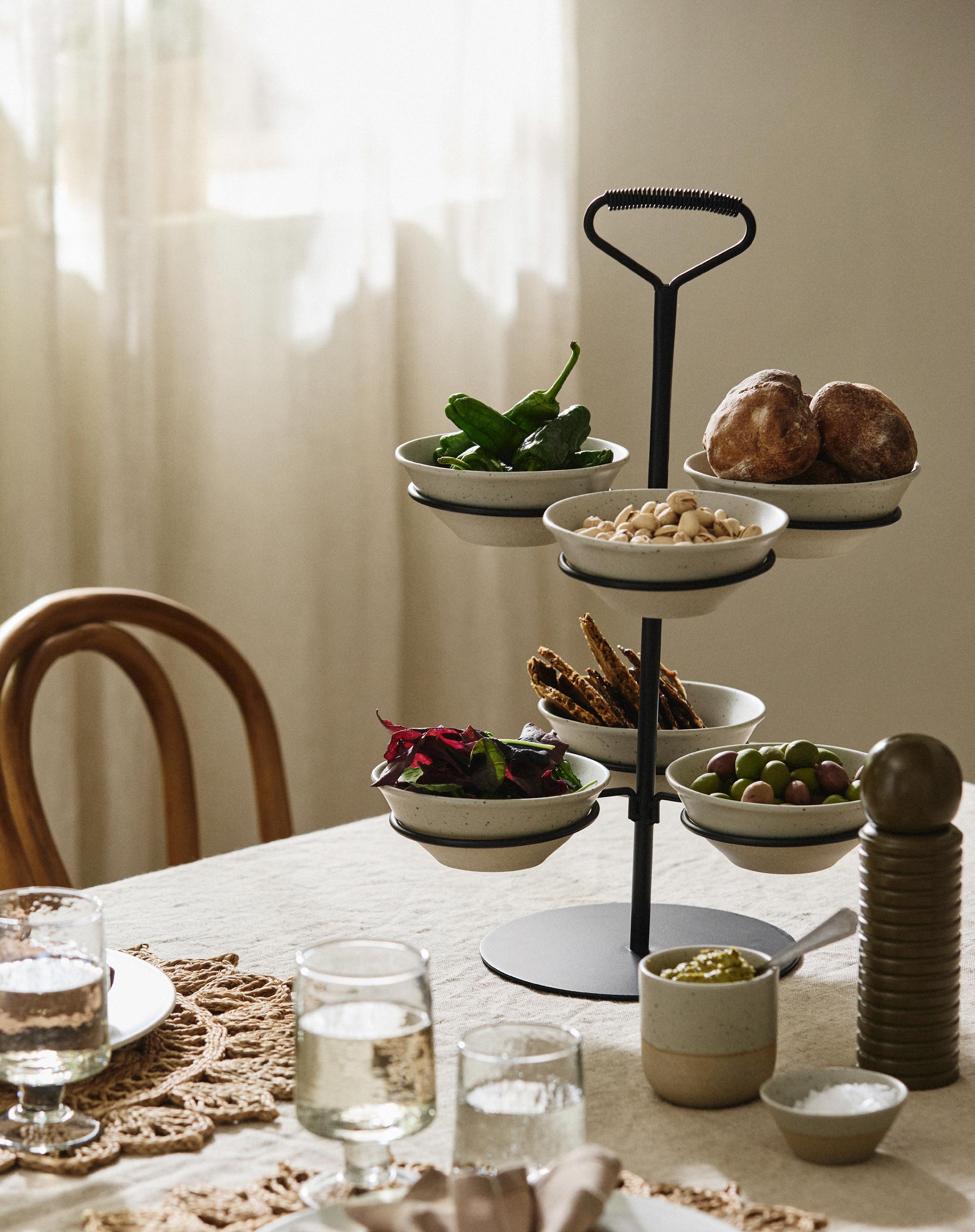 The PRIMULA serving stands are a simple and functional way to elevate your food presentation for shared meals or beautifully set tables. Made of powder-coated iron, they offer a clean, graphic look with a sturdy frame. Designed to fit bowls and plates from the GRAINY and GRAWA series.