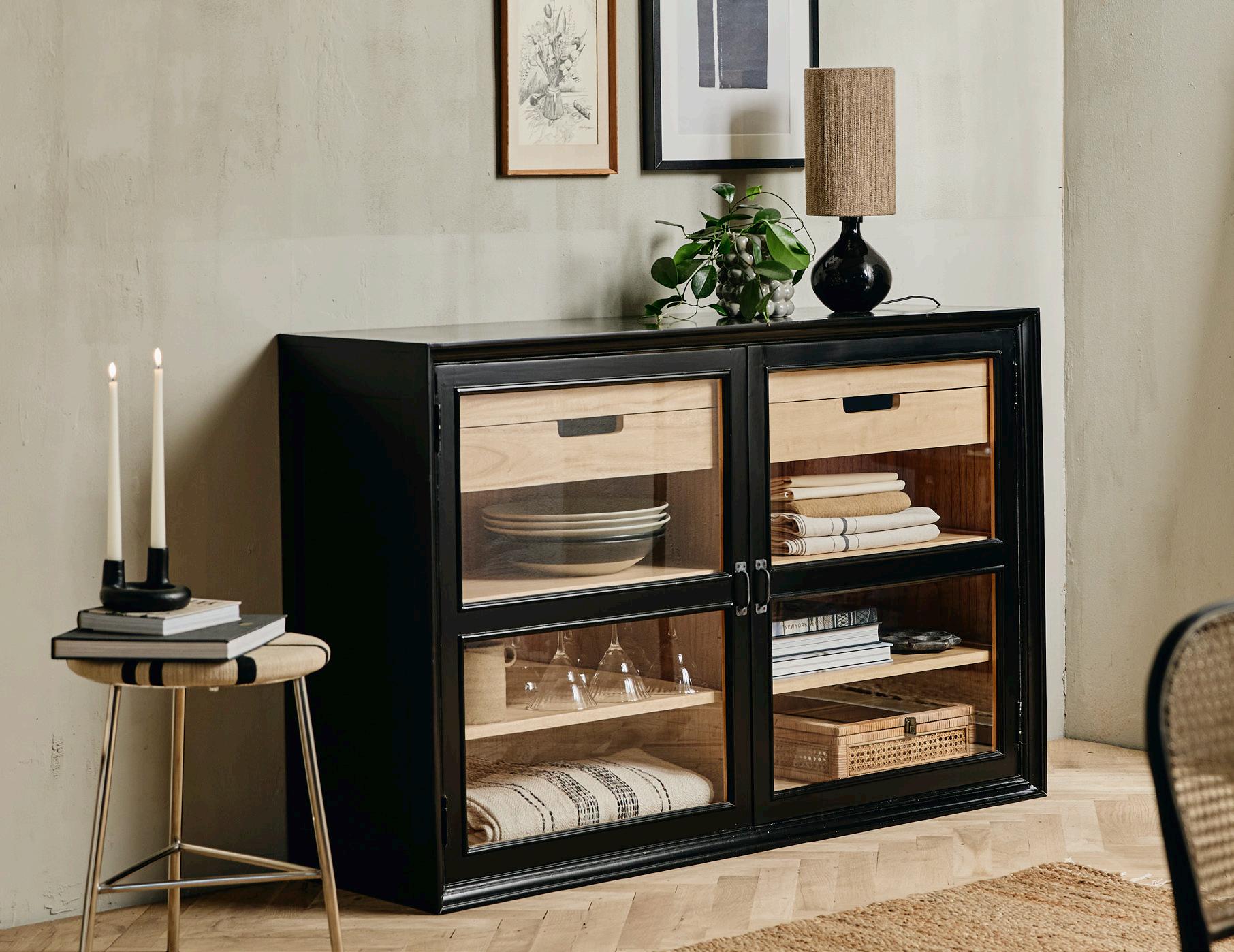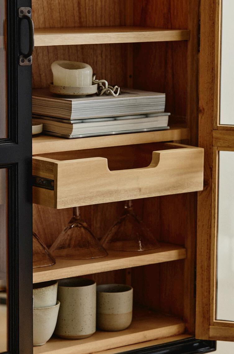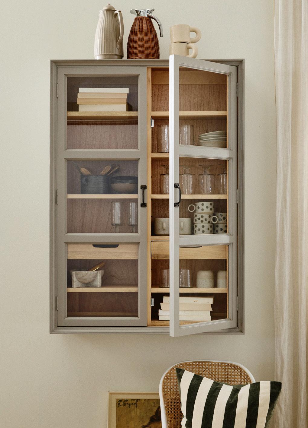 The VIVA cabinet, made of wood with two glass doors, merges modern styles with a classic look. The sleek edges elegantly frame your items, creating a sophisticated display. This versatile and functional piece suits any room in your home — from the living room and kitchen to the office or hallway.