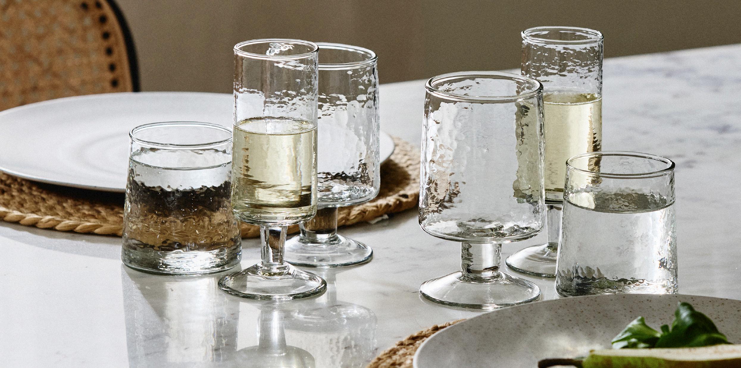 Discover our glass assortment, filled with beautiful pieces in various colors, shapes and styles. Mix and match as you like to create a unique and vibrant table setting.