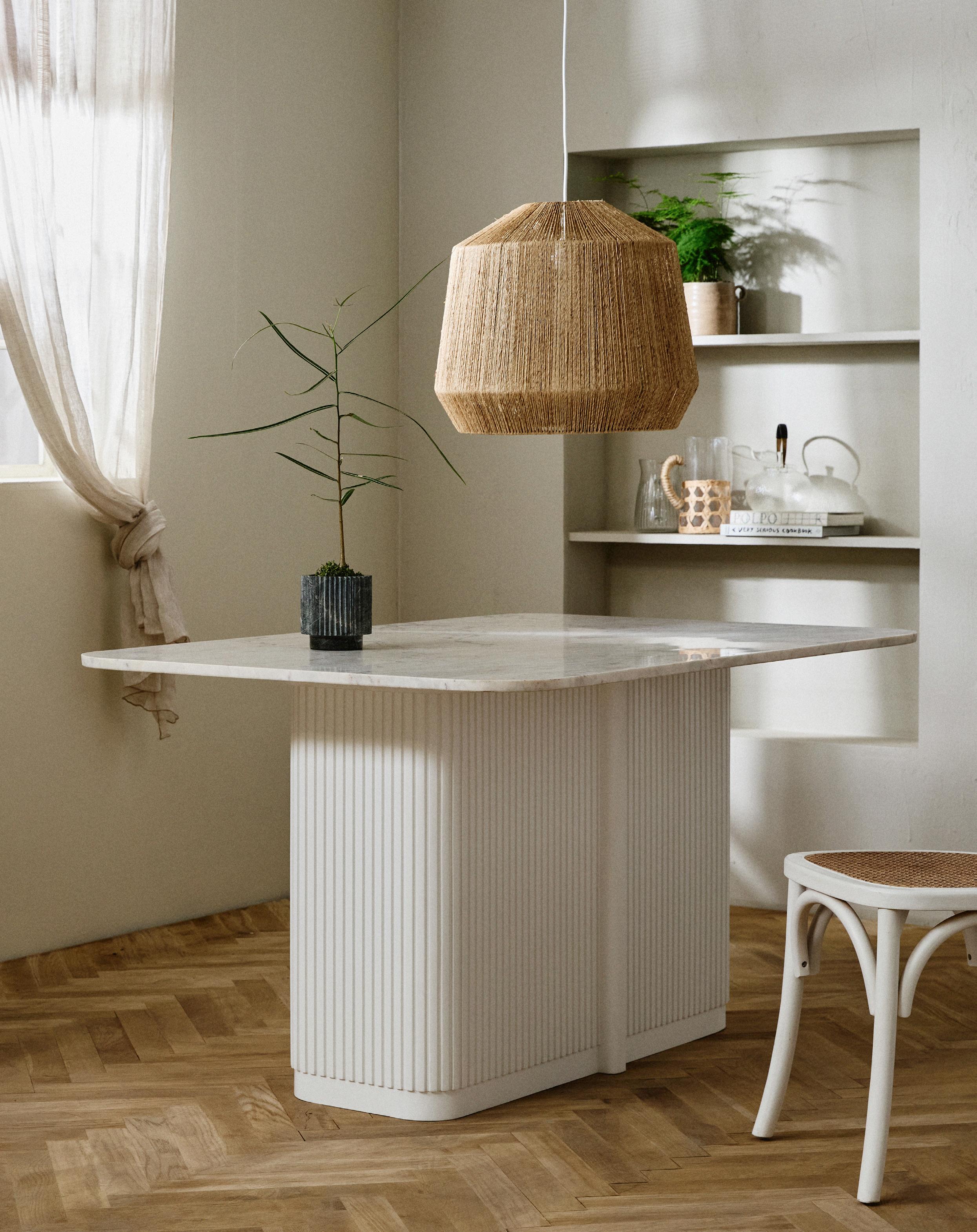 ERIE is a series of round marble tables. The interplay between the naturally patterned marble tabletop and the grooved base creates a simple yet strong identity for the design. The table series not only brings a piece of furniture into your home but invites an object that combines nature and modern design in a timeless alliance.