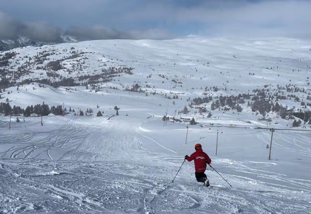 Truger er eit fint alternativ til skia, og dette kan leigast i fjellbutikken på toppen, der ein også har truger for borna. I vinterferien blir det guida trugeturar for familiar.