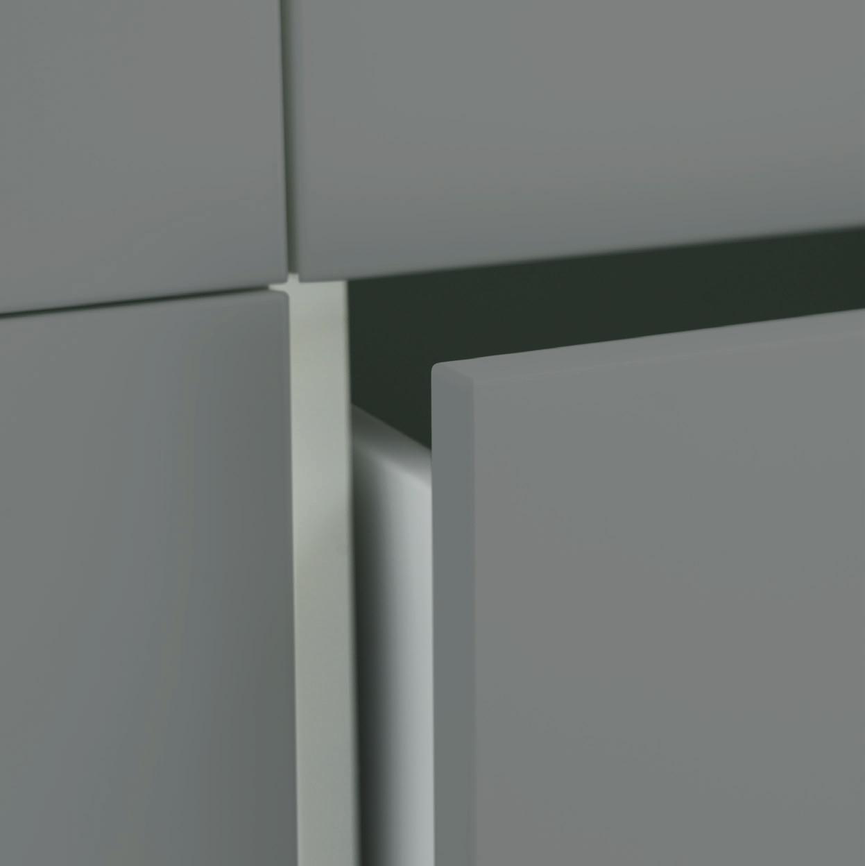 En 16 mm tjock, slät lucka i melamin med ABS kantlist. Tierp går att få i fyra kulörer.