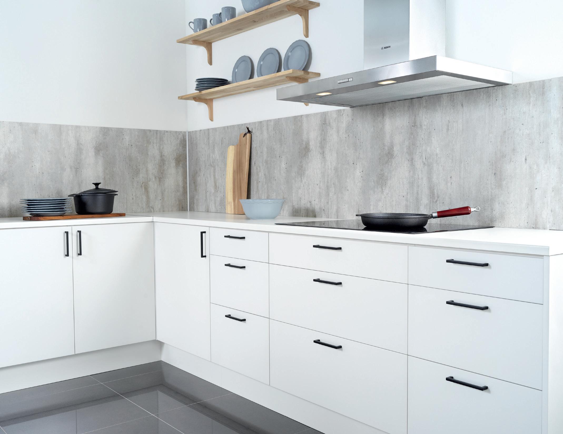 På vårt lager finns en slät vit lucka, Ideal, som går att få tillsammans med ditt kompletta kök inom en vecka.