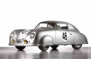 Veuillet and his compatriot Edmond Mouche won the hotlycontested 1.1-litre class at the 24 Hours of Le Mans with a works-entered 356 SL. Porsche was the first automobile manufacturer after the war to compete at Le Mans. The 356 SL lived up to its name: The SL designation means “Super Light” and indicates the aerodynamically-optimised aluminium body with covered wheels. The fuel tank under the front hood was increased to 78 litres, making fewer pit stops necessary for the 356 SL. Driving the “aluminium can”, as the mechanics lovingly called the race car, was a 46 hp performance-enhanced four-cylinder flat engine. With this, the streamlined Coupé reached a top speed of 160 km/h, which was enough for the Veuillet/Mouche team to average 118.36 km/h, cover 2,840.65 kilometres, and set the class record.