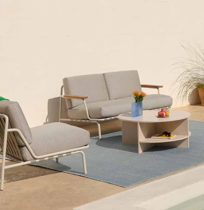 Cane line. Gem loungestol , Glaze coffee table. Twist table . Sticks platform sofa Skagerak Banco benk