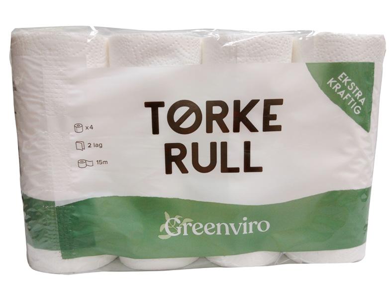 Hvitt 2-lags papir. Sekk á 16 rll.
