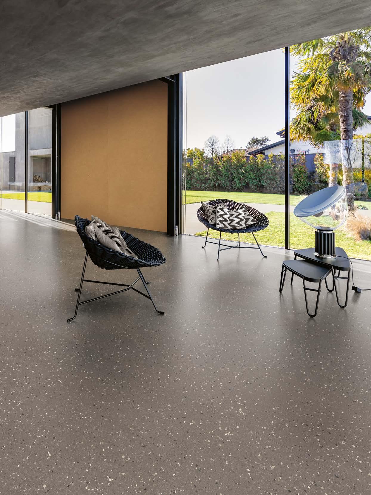 Technical material in line with architectural trends, for applications such as industrial flooring and public buildings with medium to high footfall, such as airports, shopping centres, restaurants, offices, shops, as well as residential applications featuring a targeted aesthetic content.