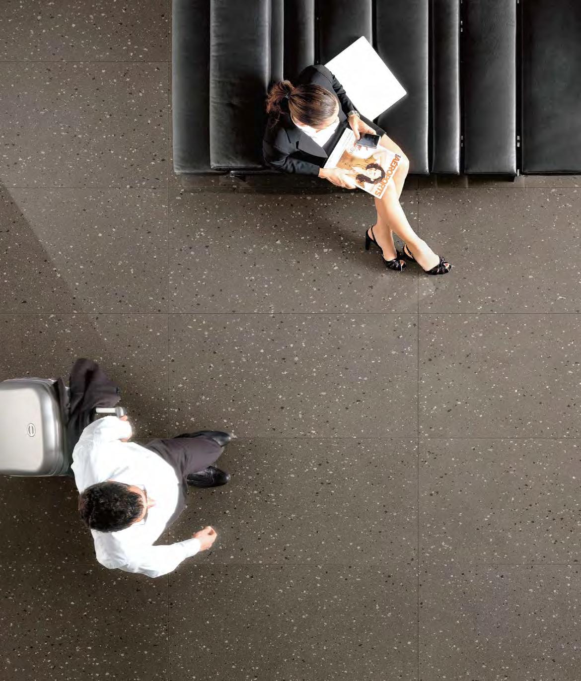 Technisches Material im Einklang mit den architektonischen Trends für Anwendungen wie Industrieböden und mittelhoch bis stark frequentierte öffentliche Bereiche wie Flughäfen, Einkaufszentren, Restaurants, Büros und Läden, aber auch für Wohngebäude mit wertiger Optik.