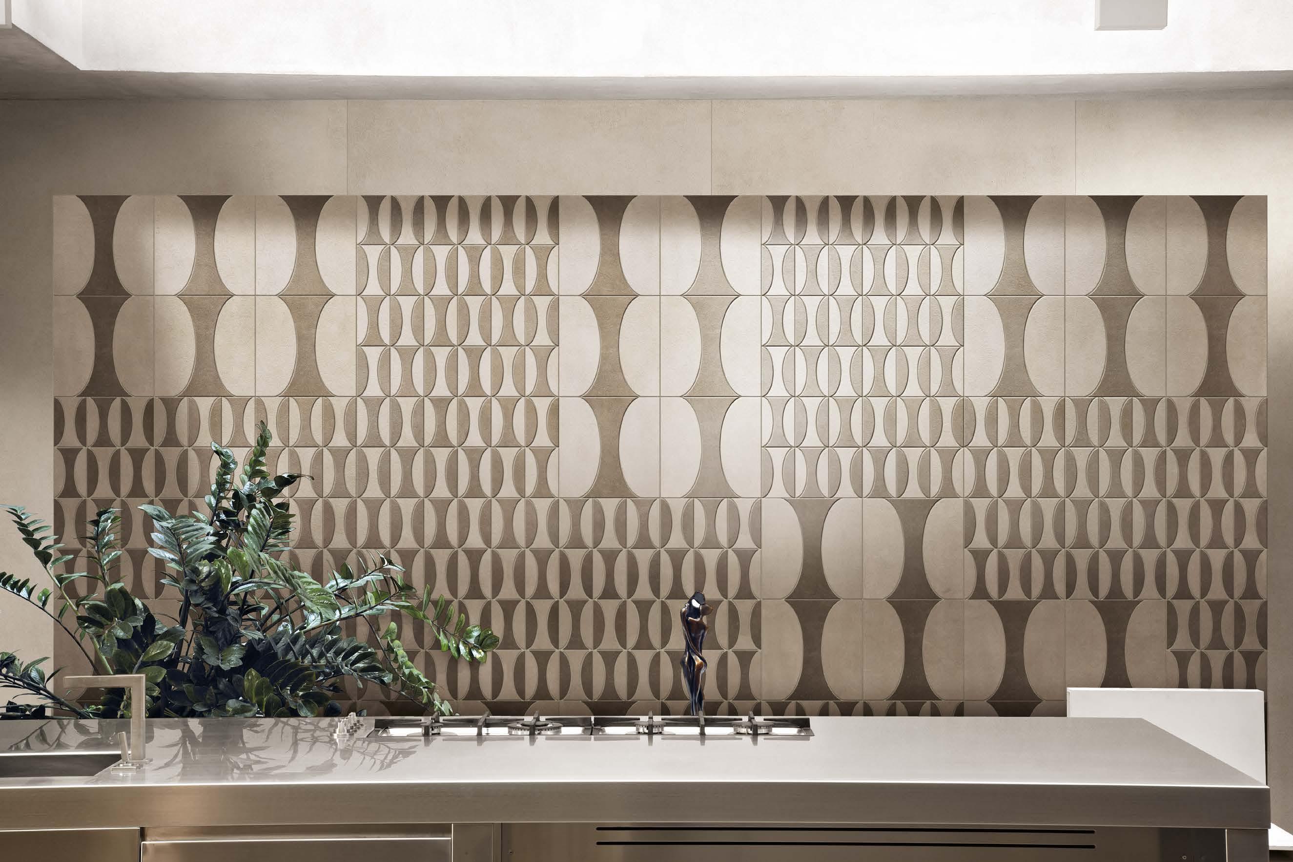 floor: MOKA 120x240 - 471/4"x941/2" wall: PUZZLE DECOR IVORY 160x160 - 63"x63" 18