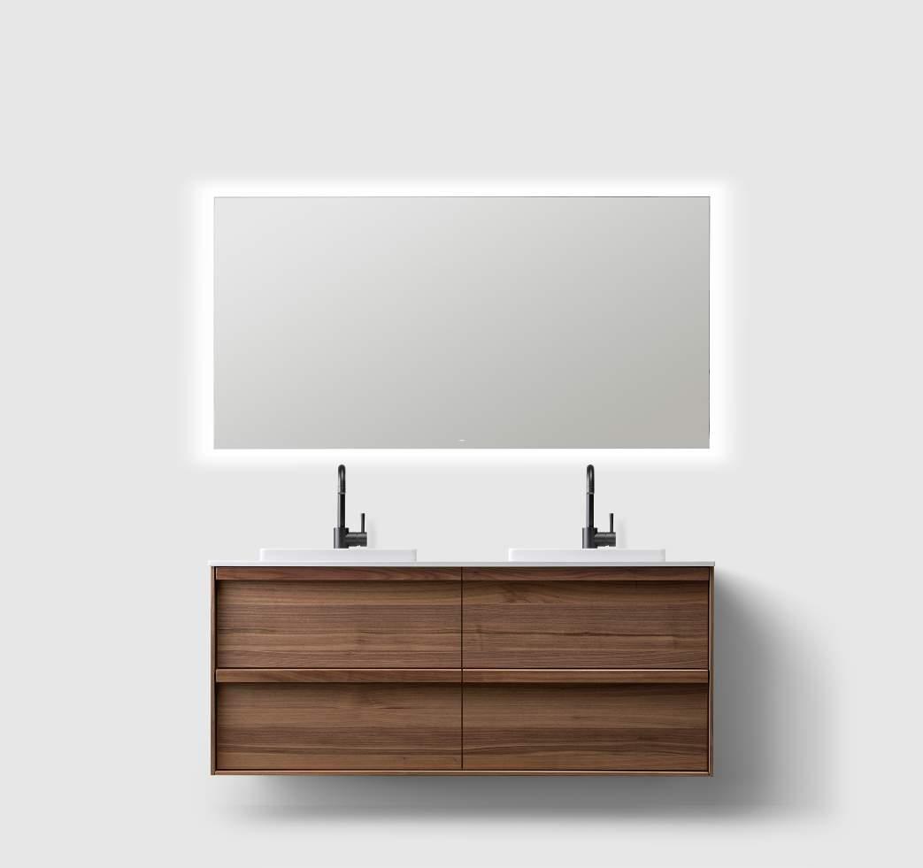 BILDE KOMMODE H2 ⁄ 140 WALNUT WOOD PLATE I HVIT SOLID SURFACE SERVANT I HVIT SOLID SURFACE SPEIL M3⁄ 140 SQUARE (TILVALG)