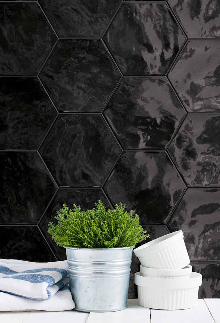 Extruded white body ceramic tiles, semi hand made technology with a unique handcrafted effect: this is Hexa Wall, a hexagonal glazed extruded white body in 17,3x15cm (7”x6”). Available in 5 colors, soft glossy finish, only for wall use. Vintage style beside new trendy shades: this is warm minimalism.
