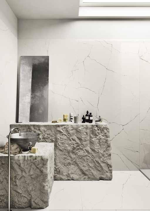 raffinato marmo italiano, caratterizzato dal colore di fondo bianco avorio con una presenza saltuaria di bande e rare venature grigio/giallastre allineate in senso longitudinale. P. 54 P. 55 THE ROOM