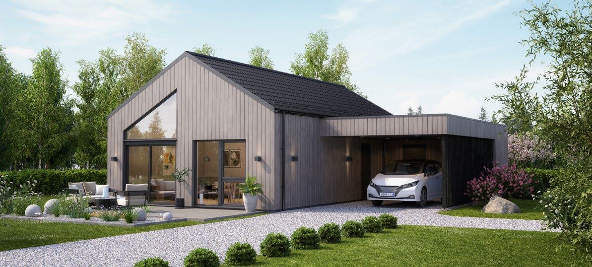 Trend 5 leveres med carport og tilhørende sportsbod, som gir både skjermet parkering og ekstra lagringsplass til sesongutstyr, sykler eller verktøy. Den åpne planløsningen gir en lys og luftig opplevelse inne, og alt er tilrettelagt for enkel tilgjengelighet og funksjonell bruk – både i dag og i årene som kommer.