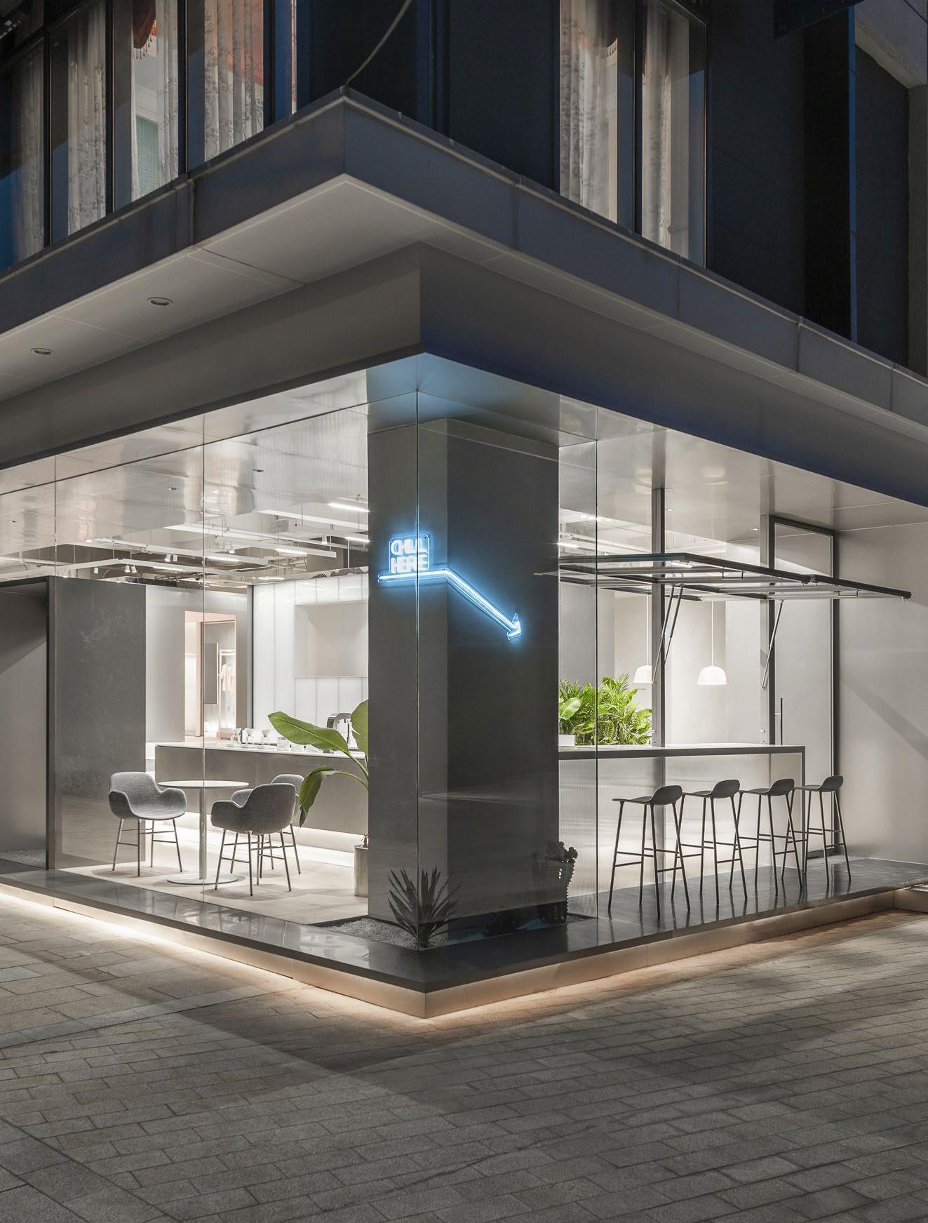 Located in Haining, China, The Immersive Theatre reimagines a fashion retail space as a theatrical fashion platform. Combining a retail store with a café, the design explores the concept of theatre to elevate the shopping experience. The interior features performance-inspired elements, including elevated platforms and seating areas furnished with Form Chairs and Barstools, creating a dynamic and interactive environment that invites visitors to fully engage with the space.