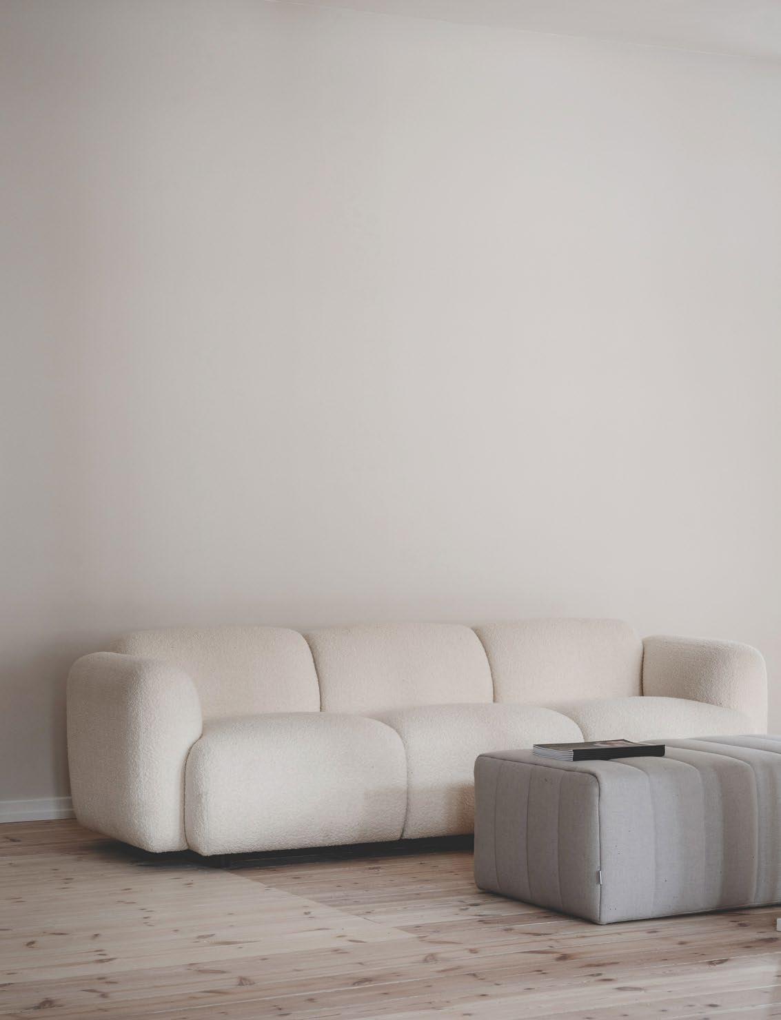 Coastal Manor is a premium, residential estate located in a charming and pristine part of Gdańsk, right off the bay shore. Determined to create a feeling of peace and tranquility, a serene, desaturated color palette was chosen, with hues ranging from shell whites to warm, earthy tones including a cozy Swell Sofa and upholstered Hyg Swivel dining chairs by Normann Copenhagen
