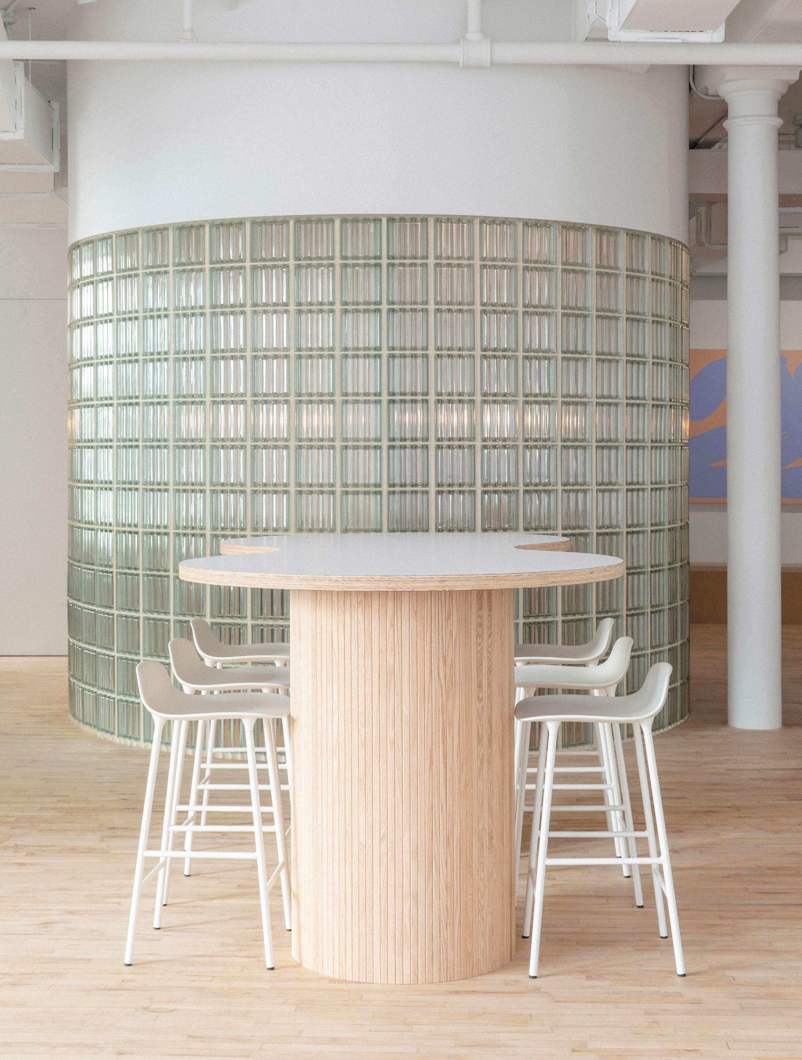 Step into Billie HQ, a dynamic office space in SoHo, NYC. Known for creating the “internet’s favorite razor”, the office space features subtle nods to bathroom materials which blend seamlessly with a flexible and open work environment. Form Barstools by Normann Copenhagen adorn the space, encouraging collaboration and casual catch-ups among colleagues.