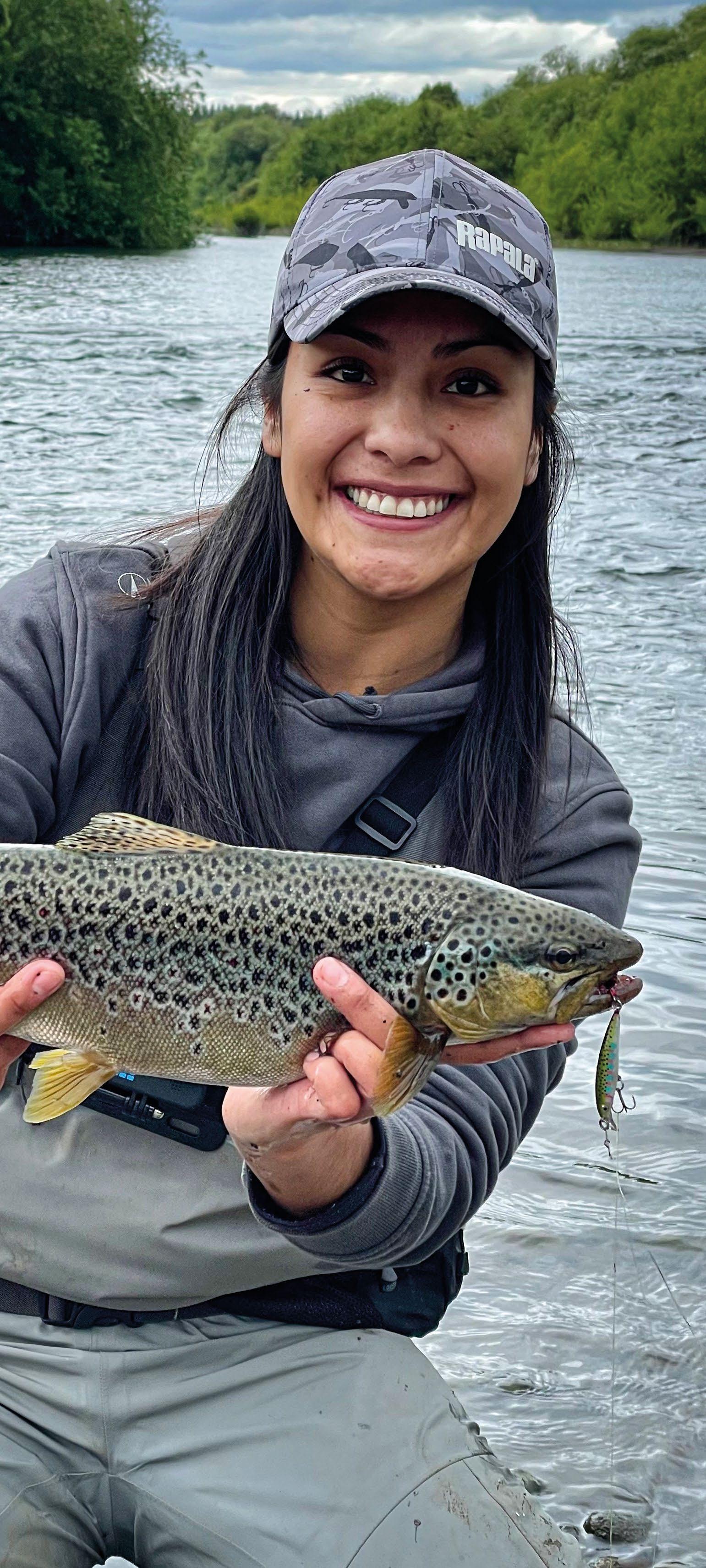 Desde muy chiquita tuve una relación cercana con la pesca, recuerdo que acompañaba al río a mi padre, en primera instancia como espectadora, y tiempo después tomé la caña y no la solté más. Poco a poco fui aprendiendo por mi cuenta, indagando en internet, era re curiosa, veía muchos videos para irme puliendo, y sobre todo, lo que más llamaba mi atención era la pesca de truchas, definitivamente mi pez favorito. Pescar para mí es todo un mundo, me encanta vadear ríos pequeños, entre árboles y martines pescadores. Todos deberíamos, en algún momento de la vida, tener la satisfacción de sentir un buen pique.