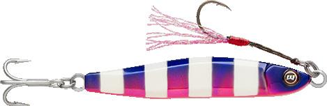 Fabricado como un torpedo de acero, el Sarda nada rápido y pega fuerte. Diseñado para la pesca al curricán a alta velocidad de especies de agua salada como el atún y el peto, el Sarda tiene un cuerpo de acero inoxidable muy resistente y una estructura interna con forma aros para una durabilidad sin concesiones. Gracias a su construcción hidrodinámica, el Sarda se mantiene estable incluso a velocidades de 14 nudos. Lleva dos anzuelos simples forjados VMC® 7286 TechSet® para unos resultados brutales.