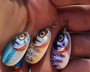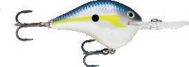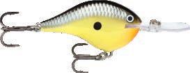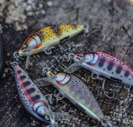 Pintados e impresos se encuentran generalmente en los señuelos de cuerpo de madera, tales como Countdown y Original Flotante.