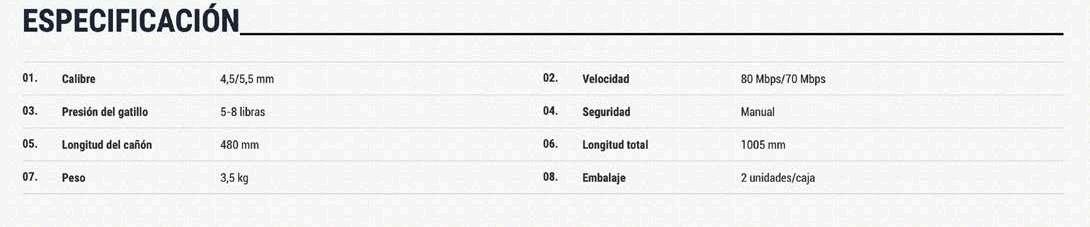 • Un calibre de 5,5 mm con presión normal puede alcanzar más de 900 FPS.